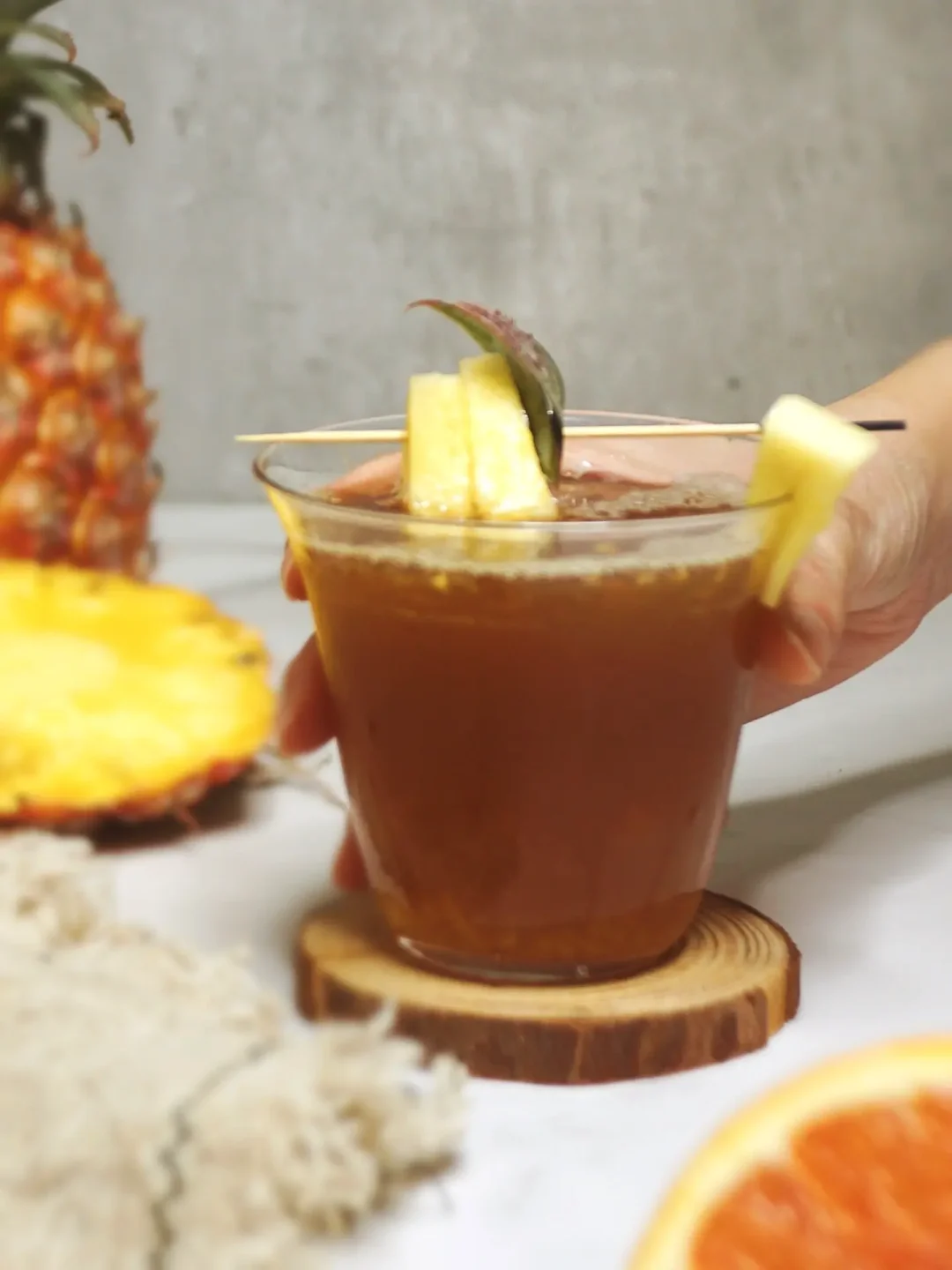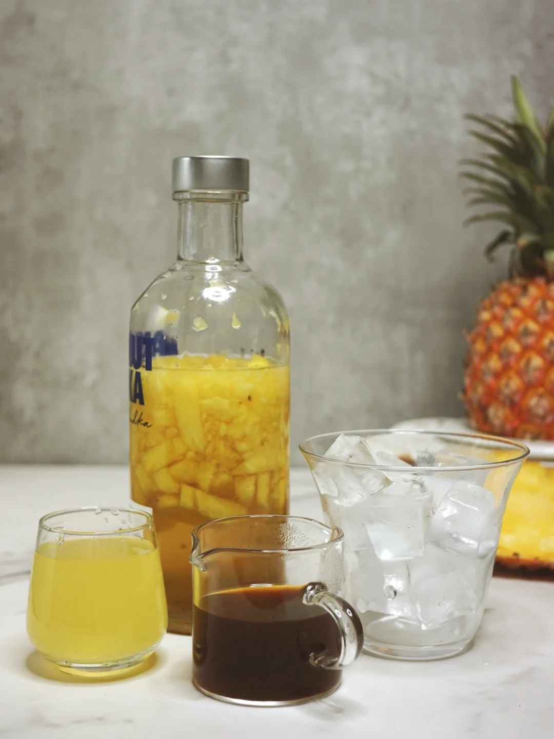 相比菠萝我更爱吃凤梨🍍不用提前盐水浸泡,也没有微涩的口感,甜丝丝的果肉。正好与还有半瓶的伏特加在一起做成了凤梨酒,再与咖啡进行调饮,略带酒香🍹