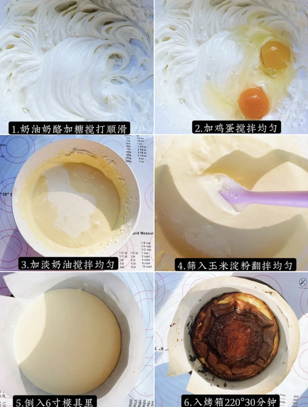 1️⃣奶油奶酪与细砂糖一起隔热水搅拌顺滑无颗粒的状态。依次加入鸡蛋、淡奶油和玉米淀粉,搅拌均匀。