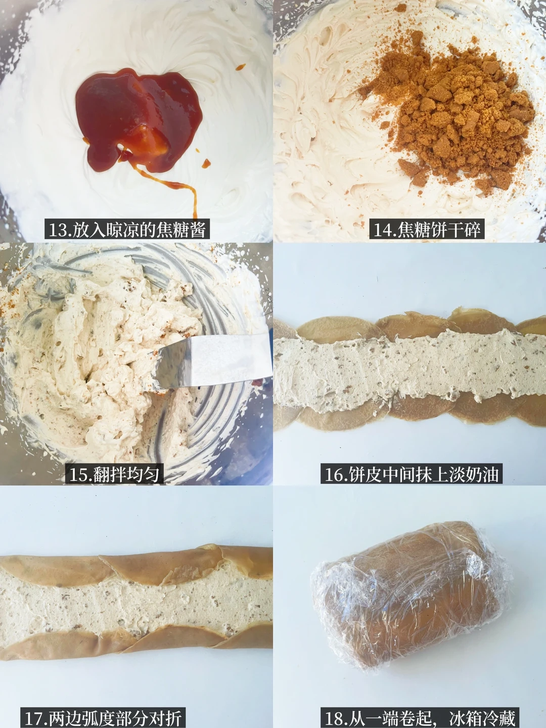 夹馅:淡奶油300g 细砂糖15g 饼干碎50g 焦糖酱40g