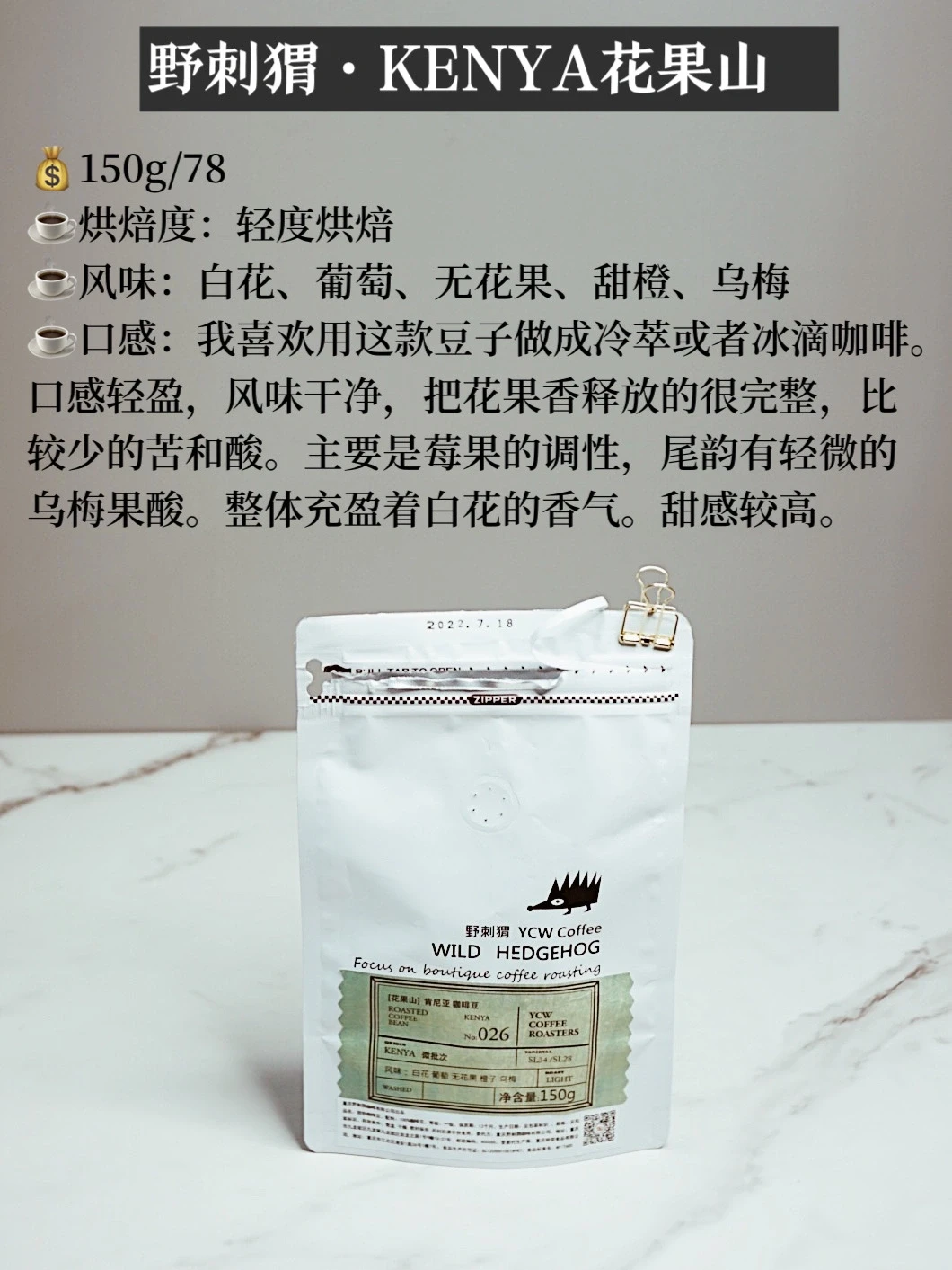 ✔️不喜欢苦的选择轻浅烘,反之是深烘,中间地带是中烘