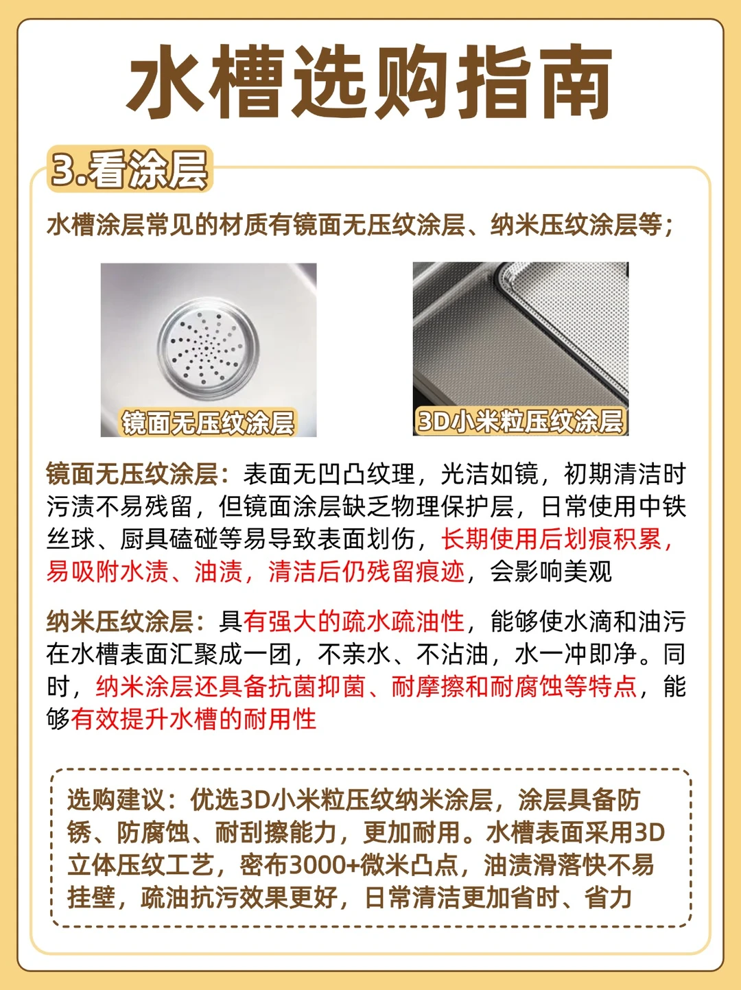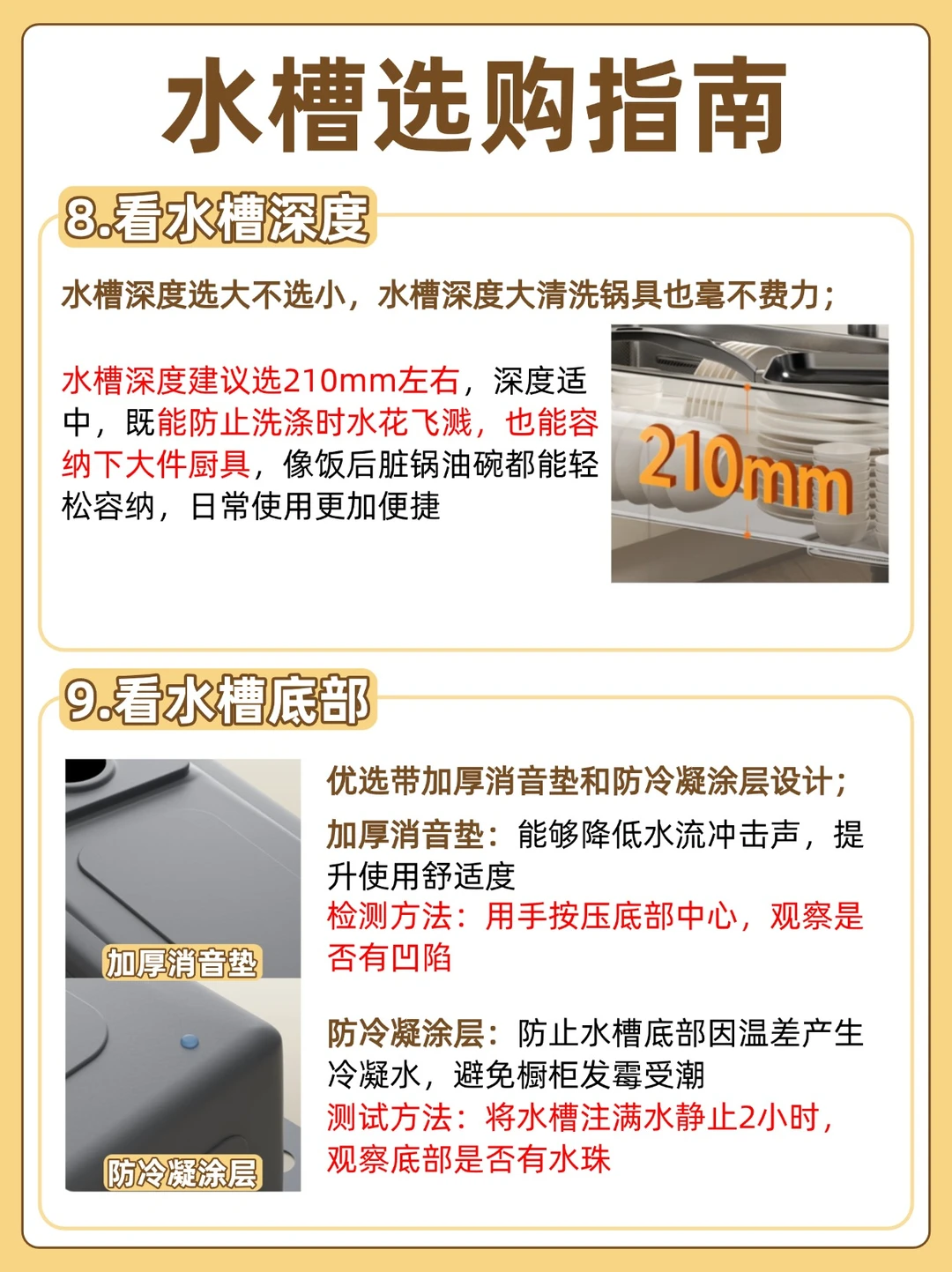 防冷凝涂层:防止水槽底部因温差产生冷凝水,避免橱柜发霉受潮