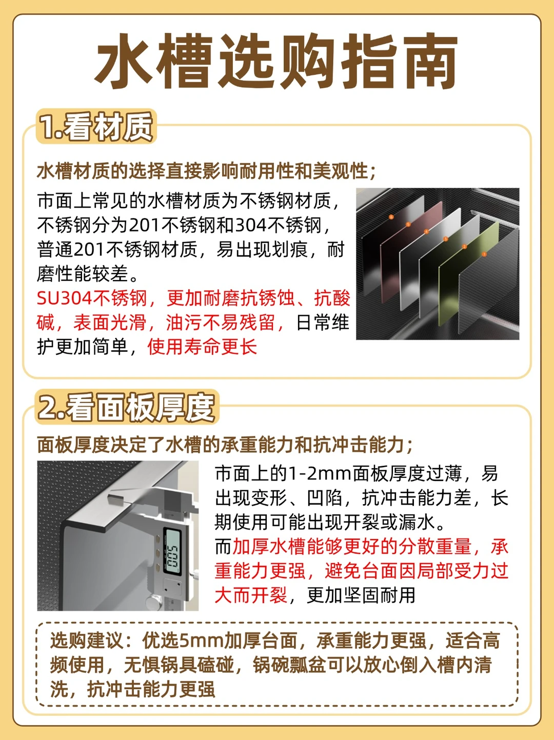优选5mm加厚台面,承重能力更强,适合高频使用,无惧锅具磕碰,锅碗瓢盆可以放心倒入槽内清洗,抗冲击能力更强