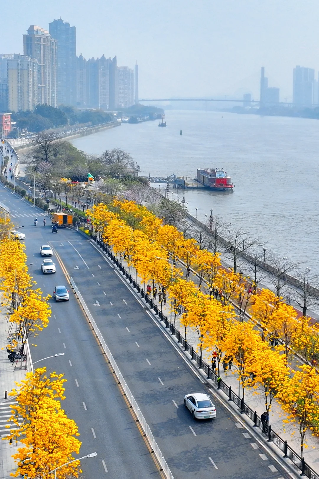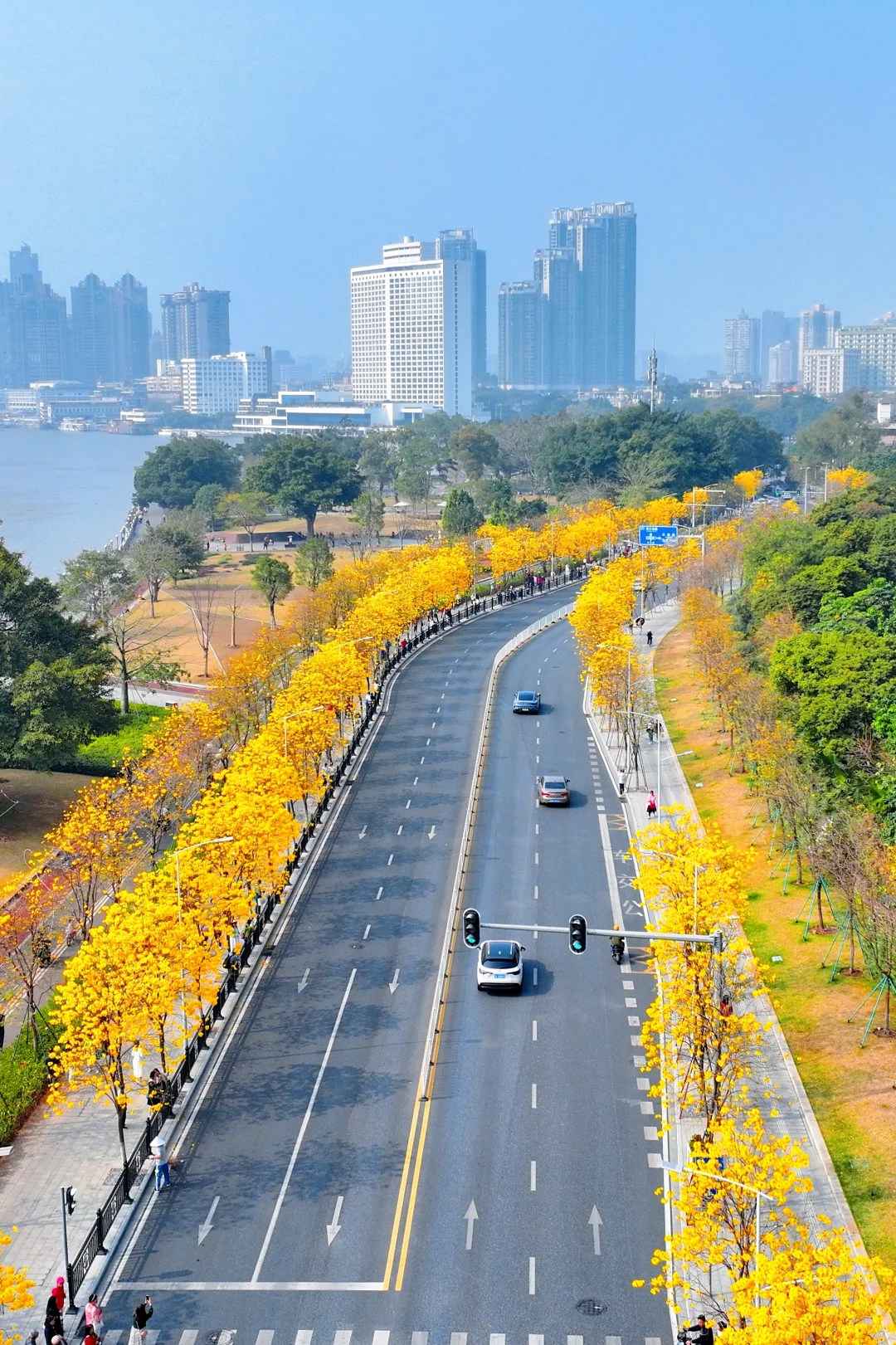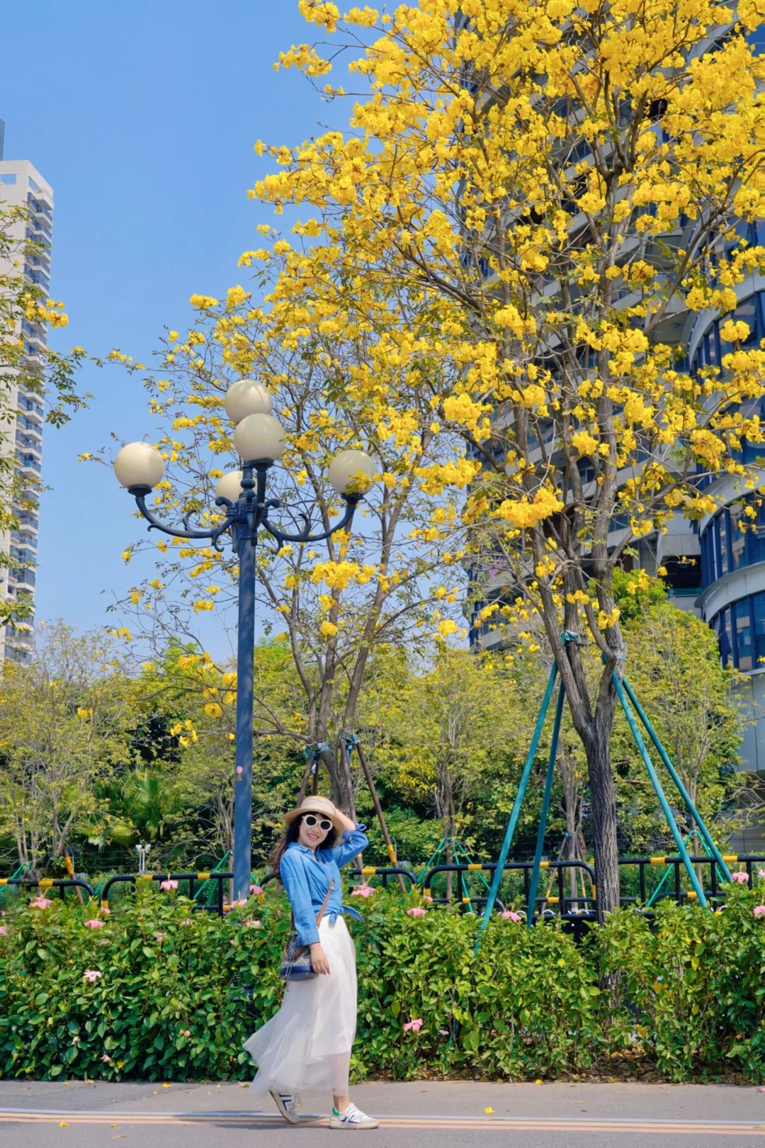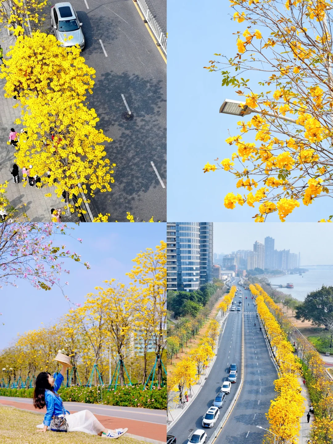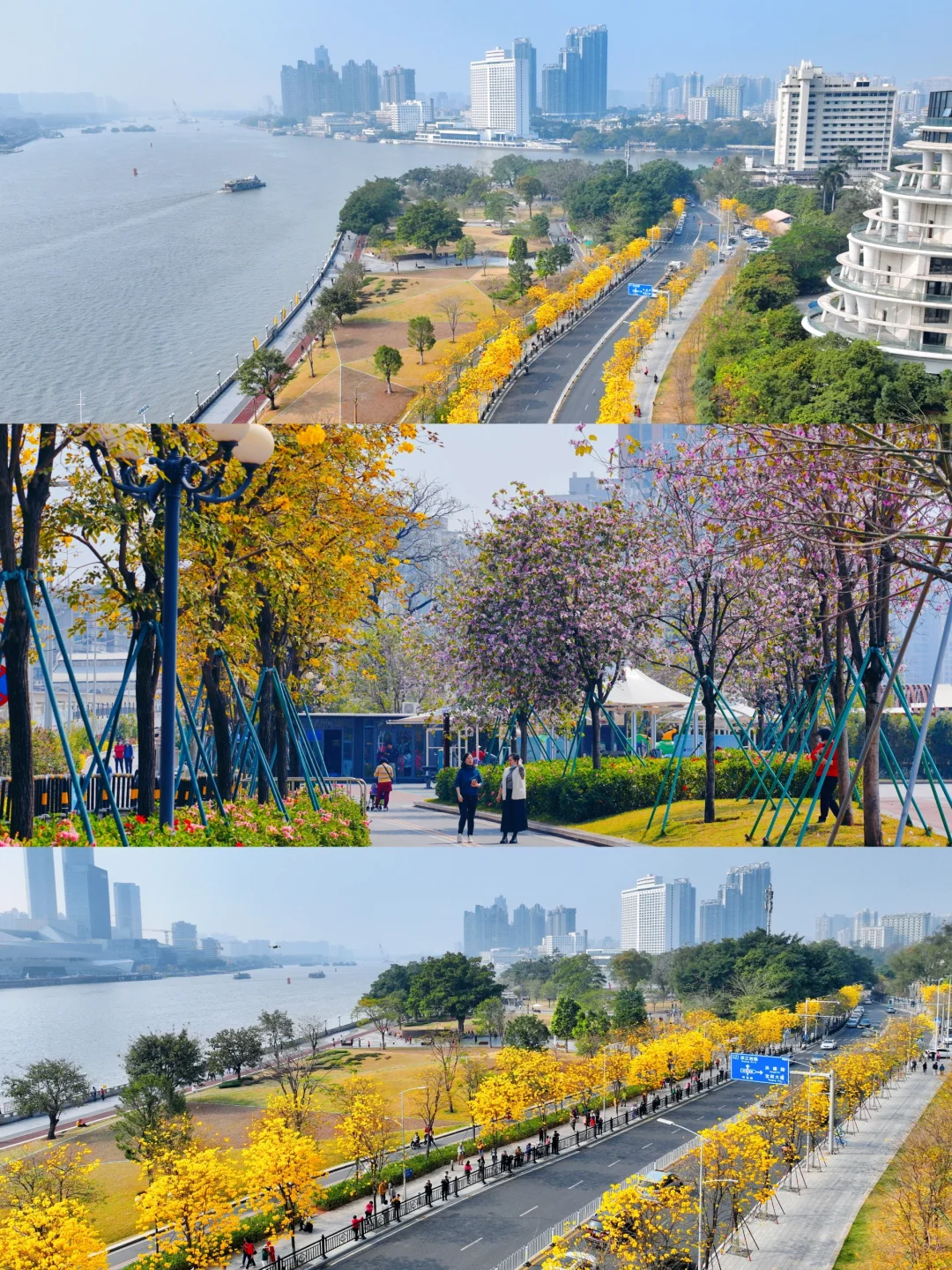 🔸洲头咀公园:马路两旁几百米的黄色风铃木开了,沿路漫步很是浪漫