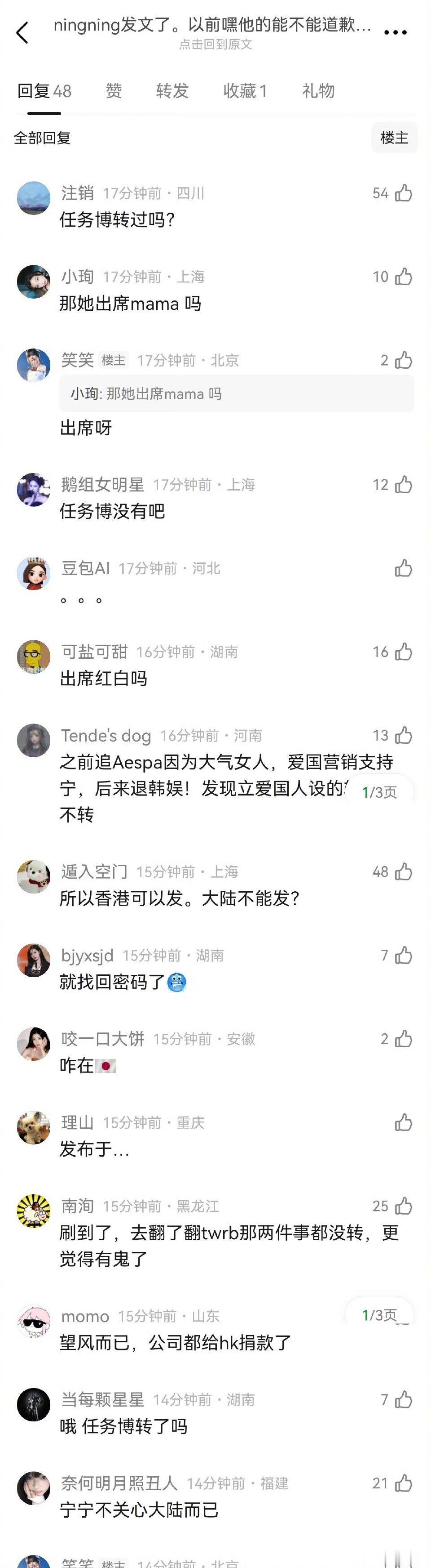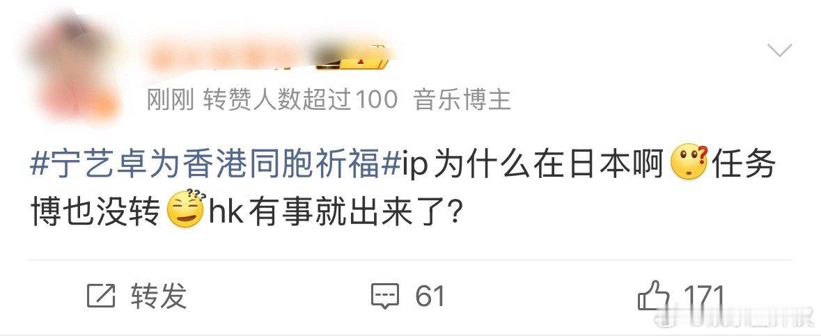 不发被骂,发了被骂?不去被骂,去了也被骂?拜托,宁艺卓也是给SM打工的,好吗在那里浑水摸鱼质疑guo 籍的,和20年前骂刘翔的喷子有什么区别宁艺卓为香港同胞祈福宁艺卓
