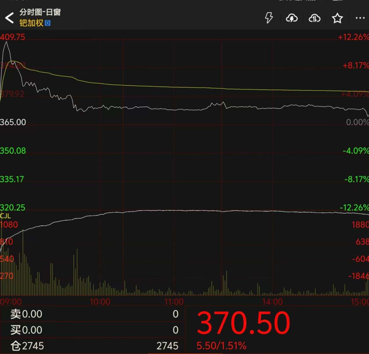 钯期货主力合约2606同样高开后回落,收报370.60元/克,结算价为381.60元/克,最终收盘涨幅为1.53%。