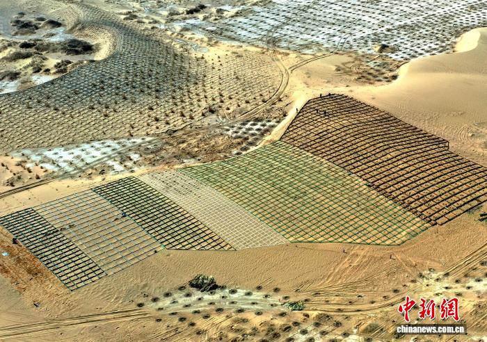 甘肃省武威市民勤县采用治沙新技术。(资料图)马爱彬摄