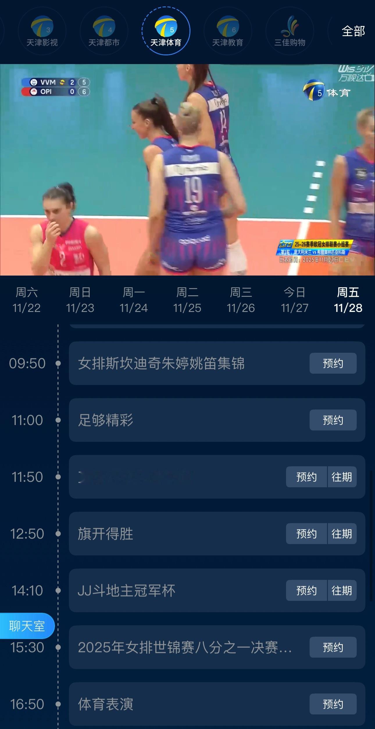 天津体育今晚播女排欧冠录像明早播朱婷在斯坎集锦明天下午回放女排世锦赛1/8 女排台