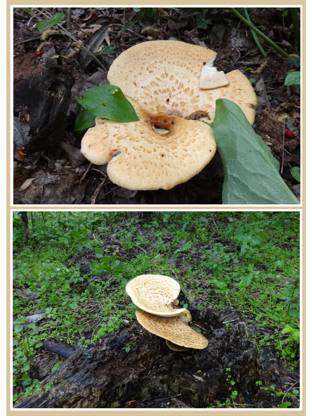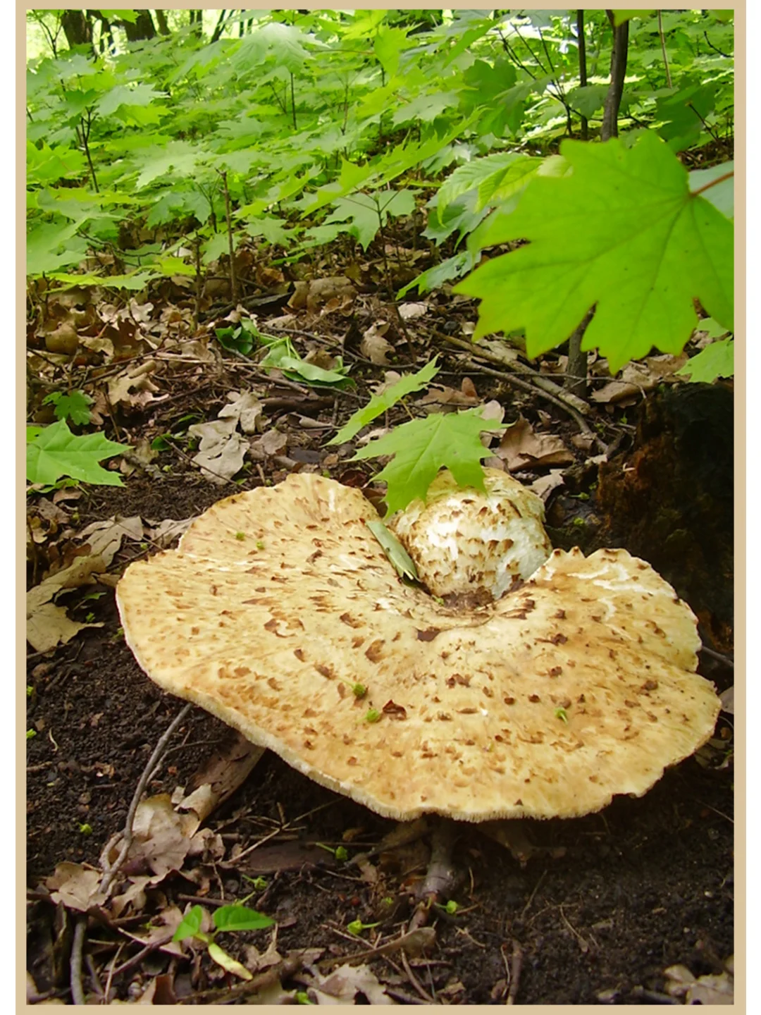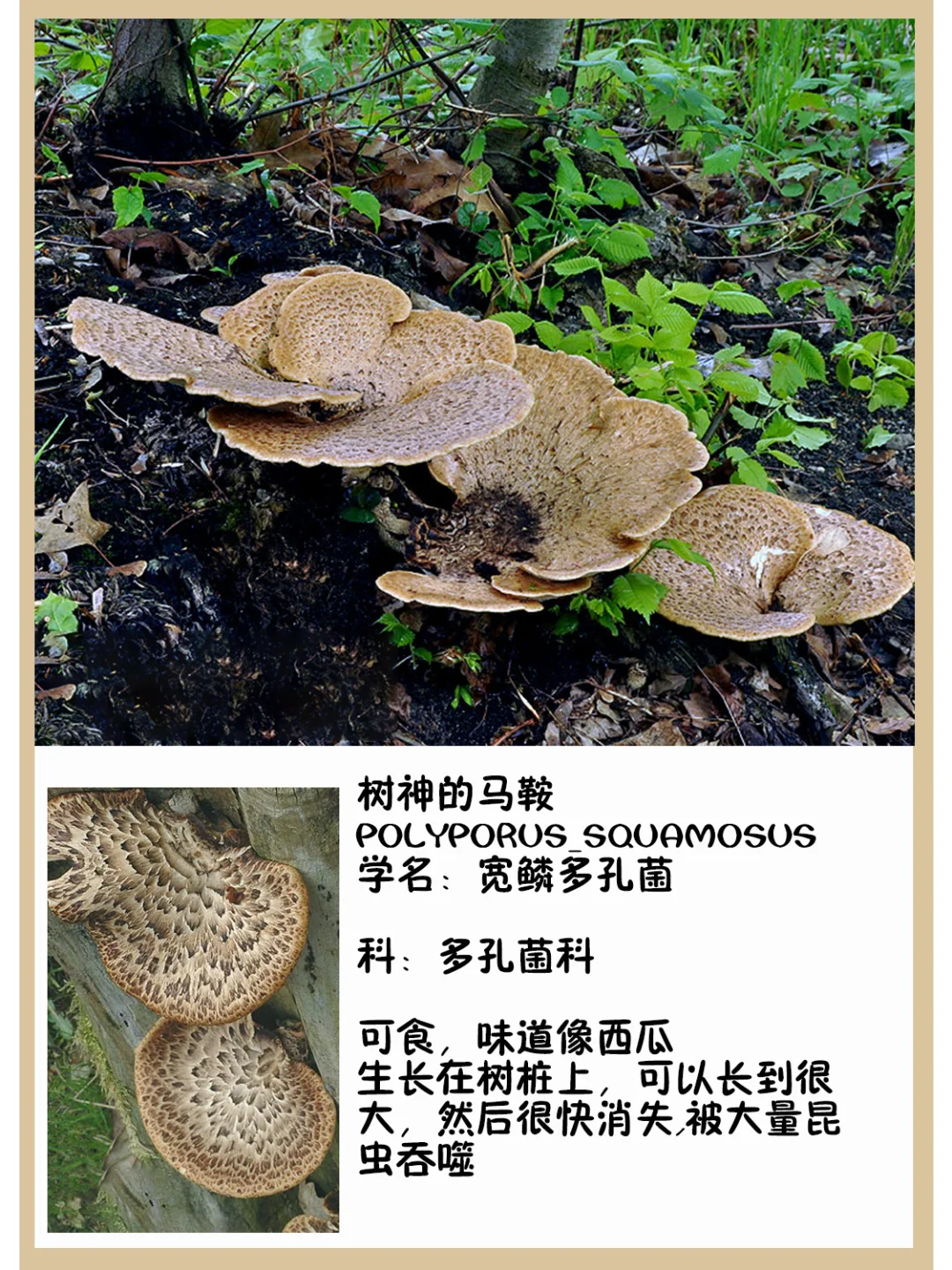 树神的马鞍 polyporus_squamosus 学名:宽鳞多孔菌 科:多孔菌科 图片©manatarka.org ©josef hlasek 可食,味道像西瓜[萌萌哒R] 生长在树桩上,可以长到很大,然后很快消失,被大量昆虫吞噬