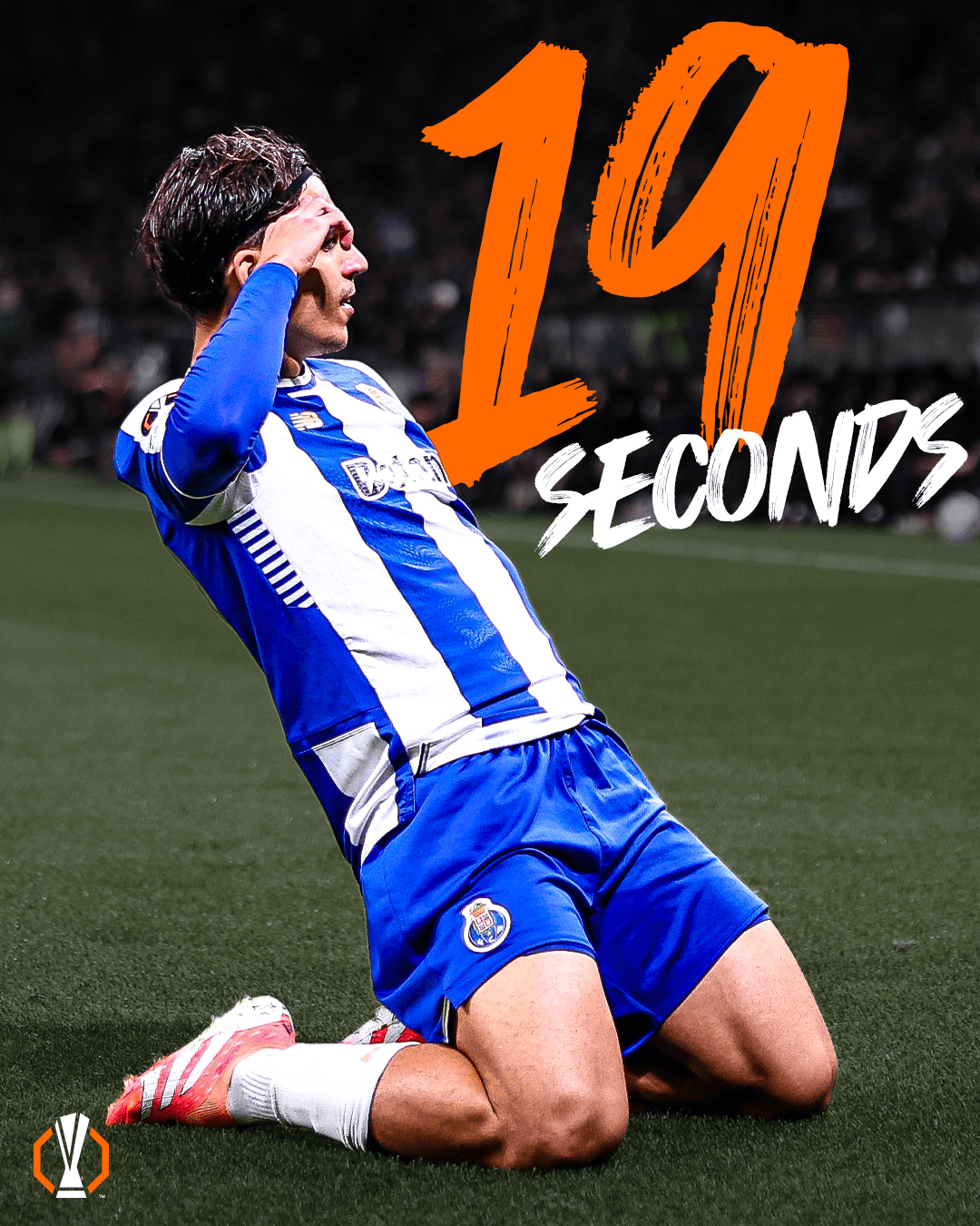 此前的纪录是马赛2018年对法兰克福时创造的(58秒)。