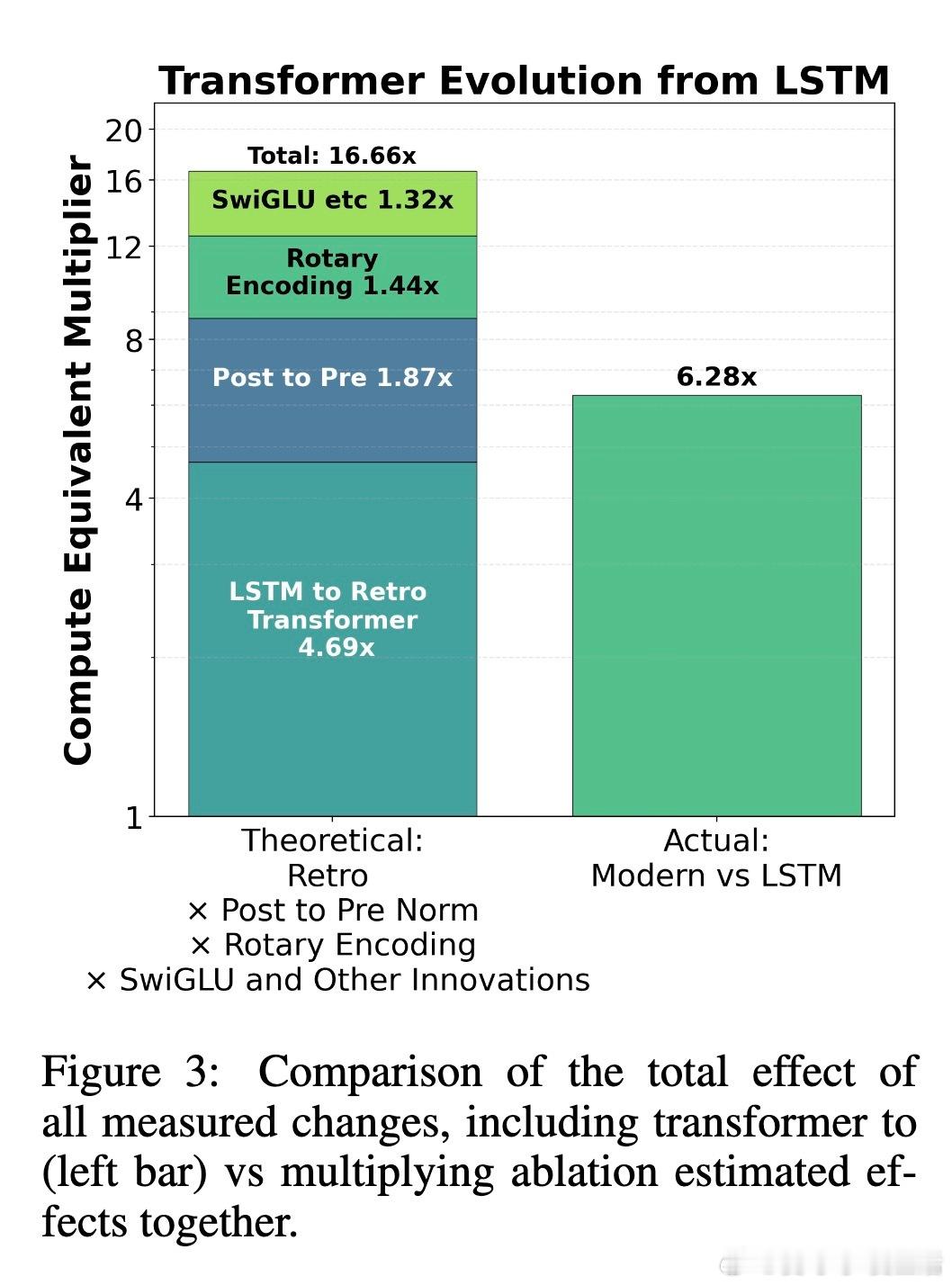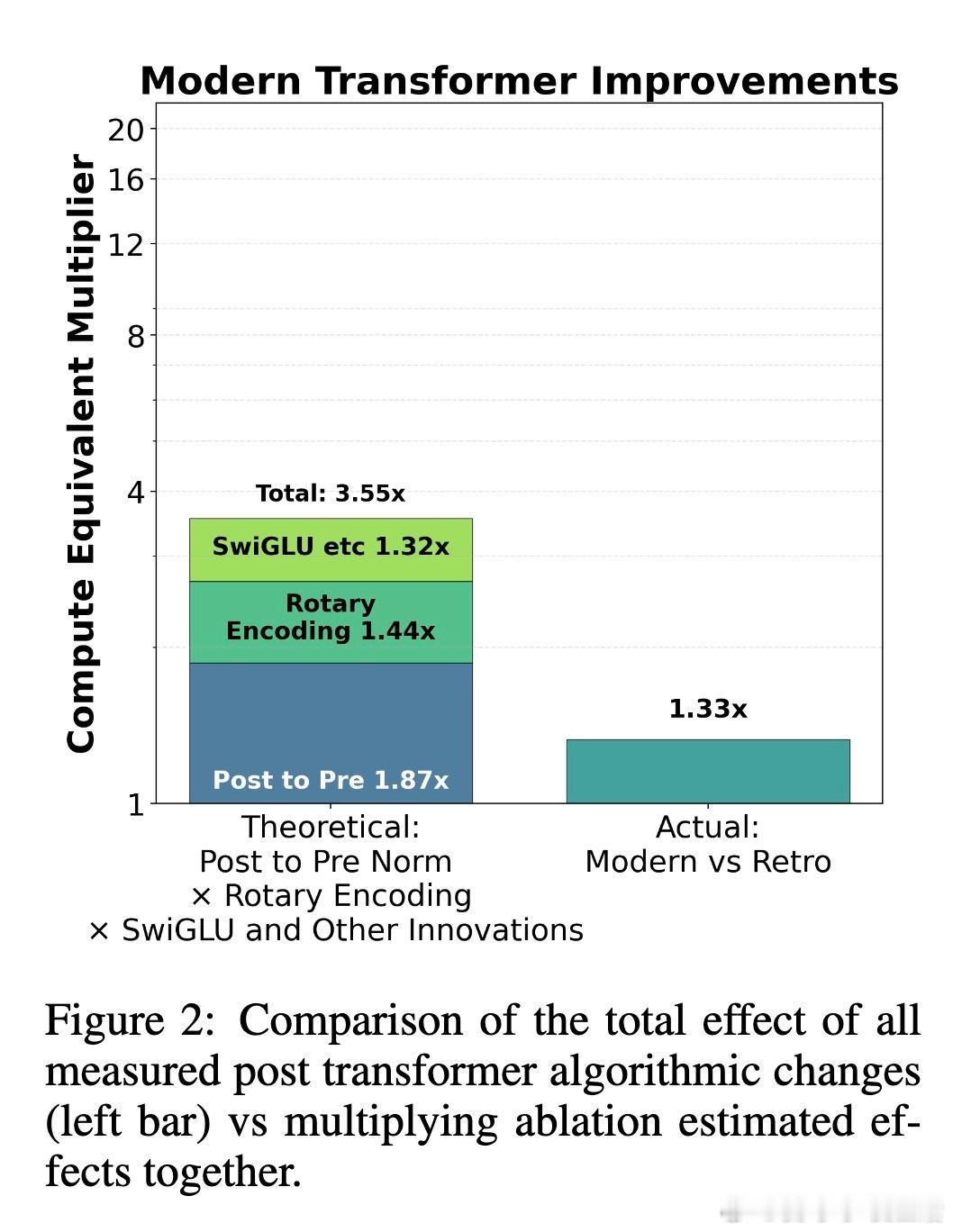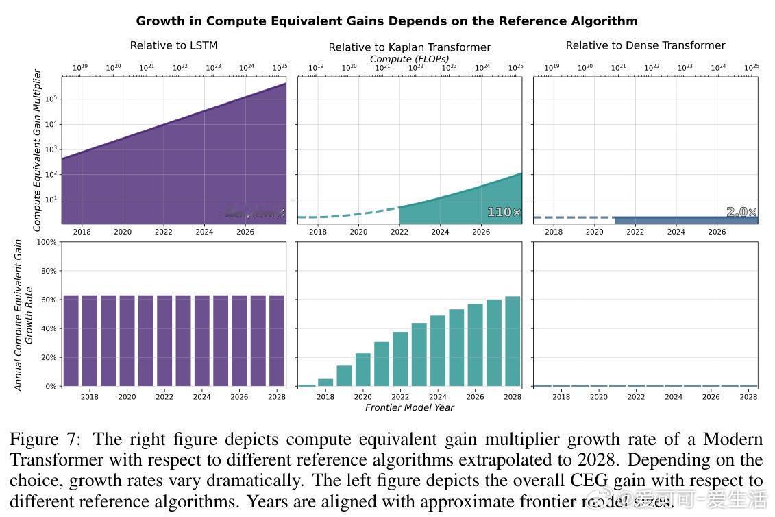 [LG]《On the Origin of Algorithmic Progress in AI》H Gundlach, A Fogelson, J Lynch, A Trisovic... [MIT FutureTech, CSAIL] (2025) 过去十年,AI算法效率被估计提升了2.2万倍,但我们的实验发现,关键创新的直接贡献不足10倍,文献中其他创新估计加起来也不到10倍,总计远低于此前预期。通过规模实验,我们发现大部分效率提升源自“规模依赖”算法,尤其是从LSTM到Transformer的架构转变,以及Kaplan到Chinchilla的规模重平衡,这两者合计解释了超过90%的效率跃升。本文提出了“计算等效增益函数”(CEG函数)概念,强调算法进步的效果强烈依赖于计算规模和参考算法。简单叠加小创新往往高估效益,且算法进步在小规模模型上表现缓慢,真正的飞跃出现在大规模时,这意味着大玩家从算法进步中获益更大。具体来看:- 绝大多数小规模模型上的算法改进(激活函数、位置编码、学习率调度、归一化、优化器)带来的效率提升有限,且相互作用并非乘法叠加。- LSTM与Transformer的比较显示,Transformer具有更优的计算扩展指数,规模越大优势越明显。- Kaplan到Chinchilla的训练数据与参数比例调整带来了显著的规模依赖性效率提升。- 不同参考点导致对算法进步的测量结果差异巨大:相对于LSTM,现代模型进步显著,但相对于现代Transformer,进步则微乎其微。- 算法效率提升不能脱离计算投入单独看,计算资源增长驱动了大部分所谓的算法进步。- 数据选择、Tokenizer改进、混合专家模型等也贡献了一定提升,但受限于实验规模难以精确量化。这意味着,未来AI算法进步可能更多依赖于新的大型架构突破,而非持续的小改进;同时算力限制可能阻碍算法进步的实现。算法创新对大规模模型开发者尤为关键,可能加剧玩家间差距。我们也提醒不要简单依赖单一的FLOP效率指标,而应综合考虑稳定性、泛化能力和部署成本等多维度因素。总之,算法进步的真相是:规模改变游戏规则,真正的质变在于“规模依赖”的架构跃迁,而非线性叠加的微小优化。这为AI未来的发展路径和资源投入提供了新的视角和警示。全文详见:arxiv.org/abs/2511.21622