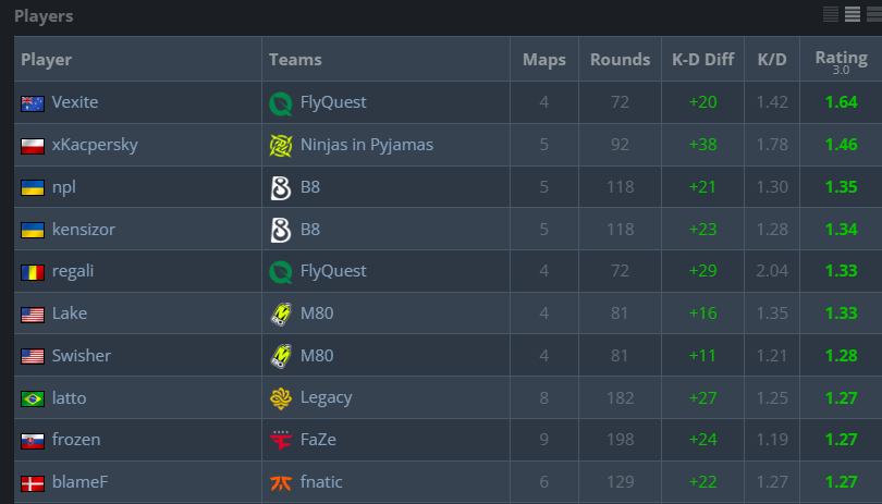 虎扑11月28日讯CS数据统计媒体报道,在布达佩斯Major2025第一阶段赛事中,Rating最高的CS选手为: