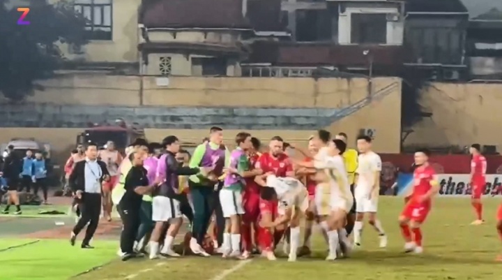 直播吧11月28日讯昨日进行的亚冠二级联赛E组第5轮,北京国安客场1-2不敌河内公安,提前一轮出局。越南媒体晒出双方第二次冲突(第91分钟)的视频。