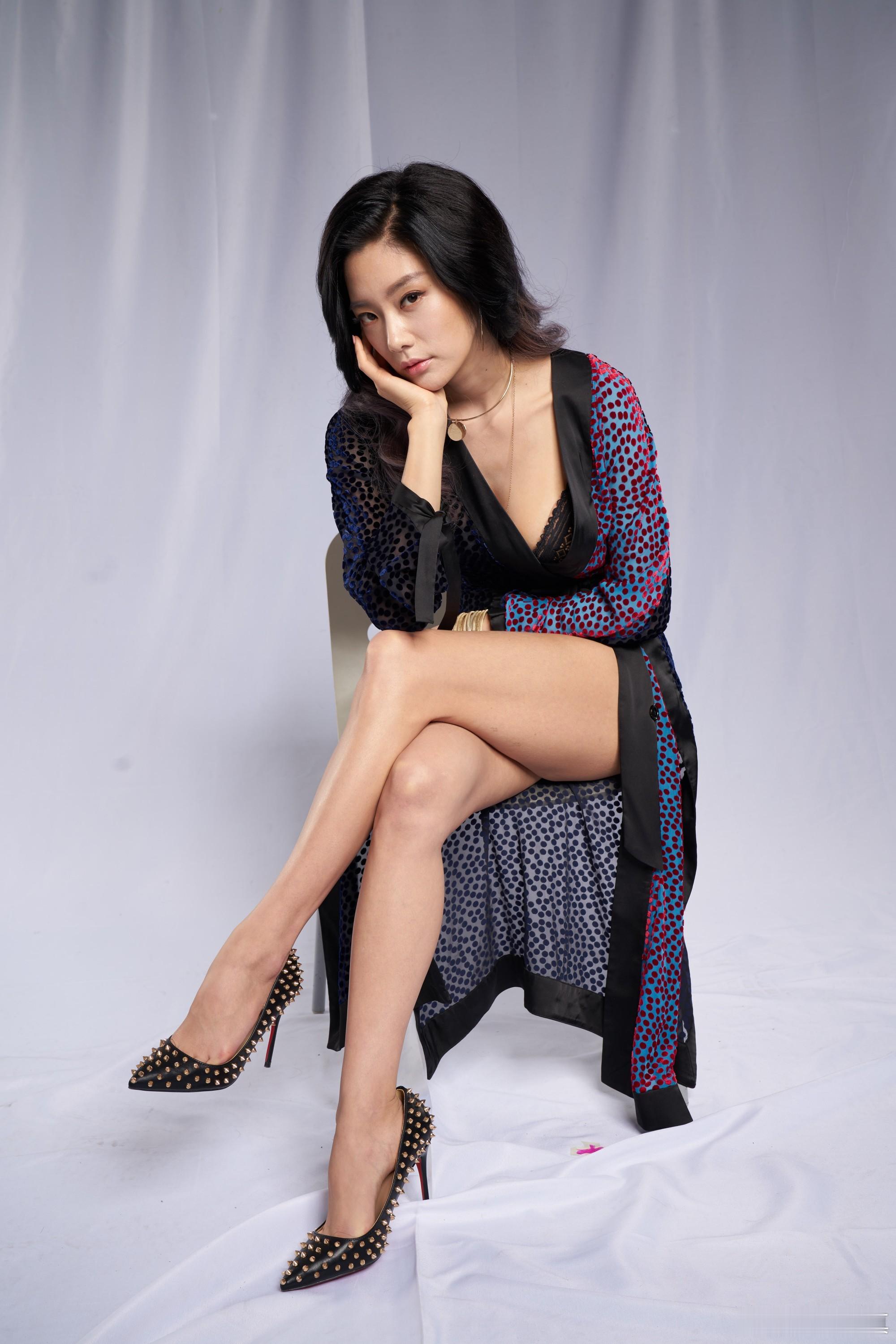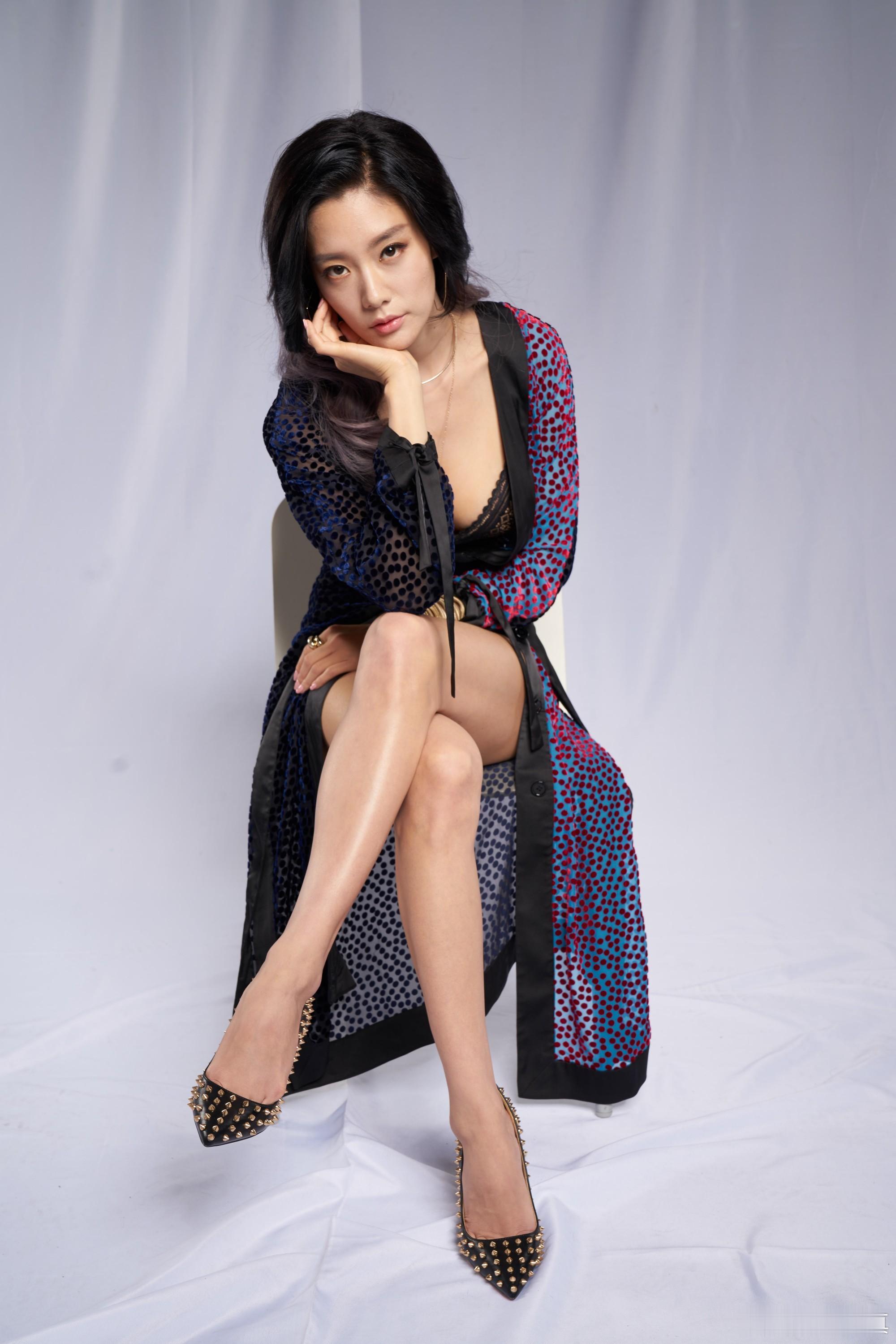 李成敏(克拉拉) 棚拍生图 黑色红蓝斑点睡袍(下)