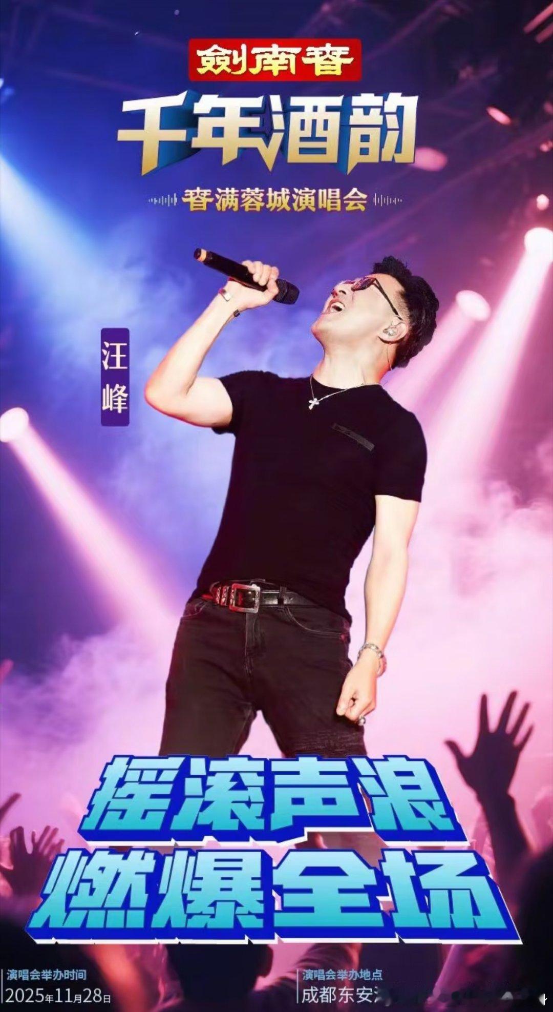 汪峰剑南春·千年酒韵春满蓉城演唱会📍 11月28日 19:00成都东安湖体育公园主体育场摇滚声浪,燃爆全城,见证千年酒韵奏响蓉城之夜!就在今晚✨倾情献唱