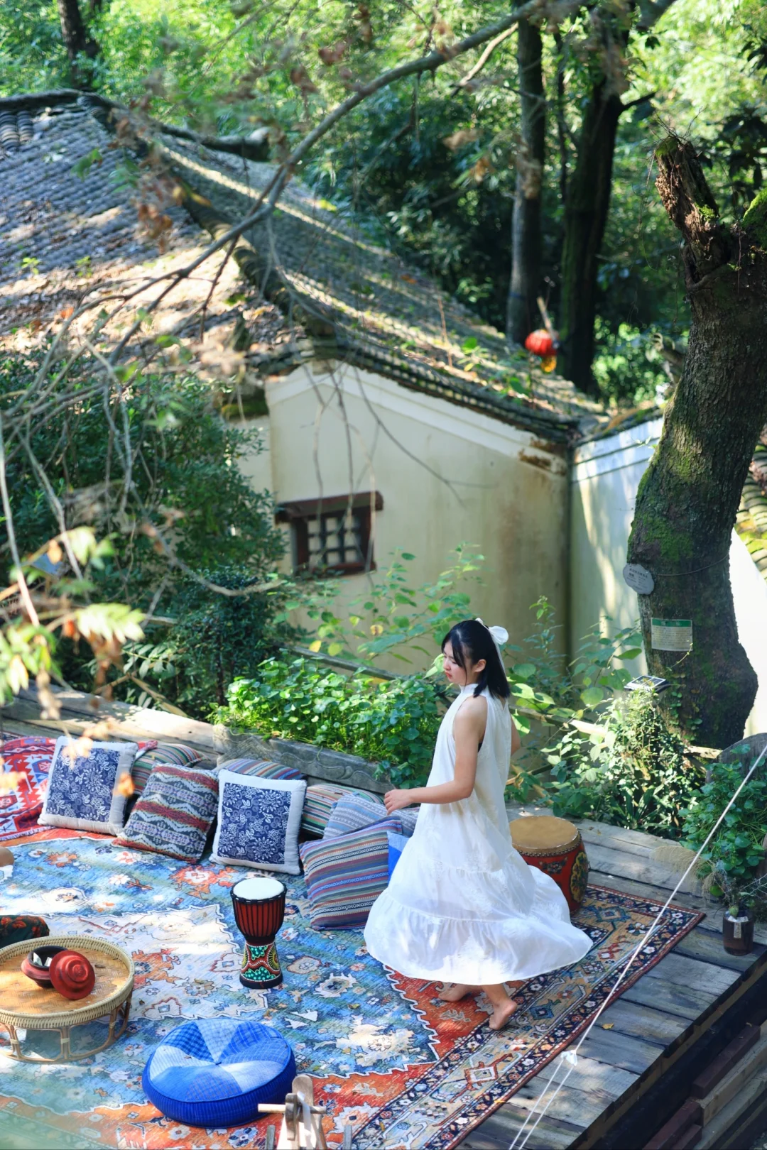 谁懂啊!在武汉找到许红豆同款有风小院🌿 被森林环绕,目之所及皆是绿意,幽静闲适 浮生听月落,闲时一杯茶🍵太治愈了 院里有一颗高大的枫香树 下午阳光透过树叶洒下来,光影斑驳🍃 等秋天树叶变黄会更加浪漫~ 伴着声声蝉鸣,好像回到了童年的夏天 📍青曦.望云