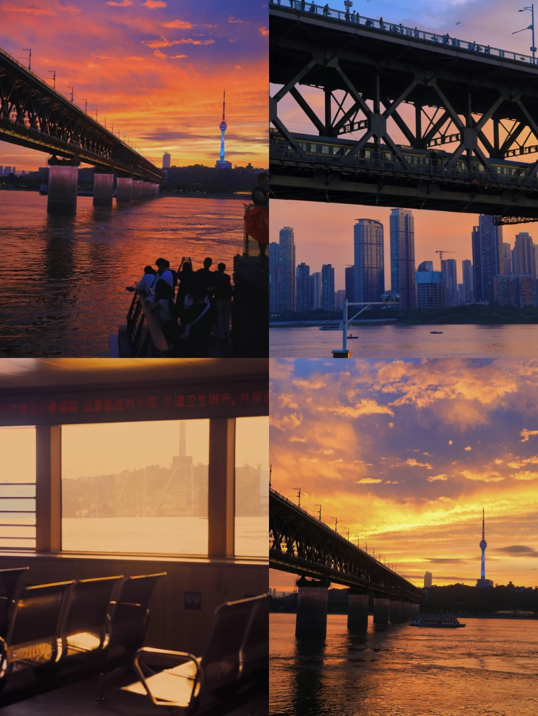 傍晚从汉口坐轮渡到长江下看一场绝美日落🌅吹吹江风感受武汉的浪漫