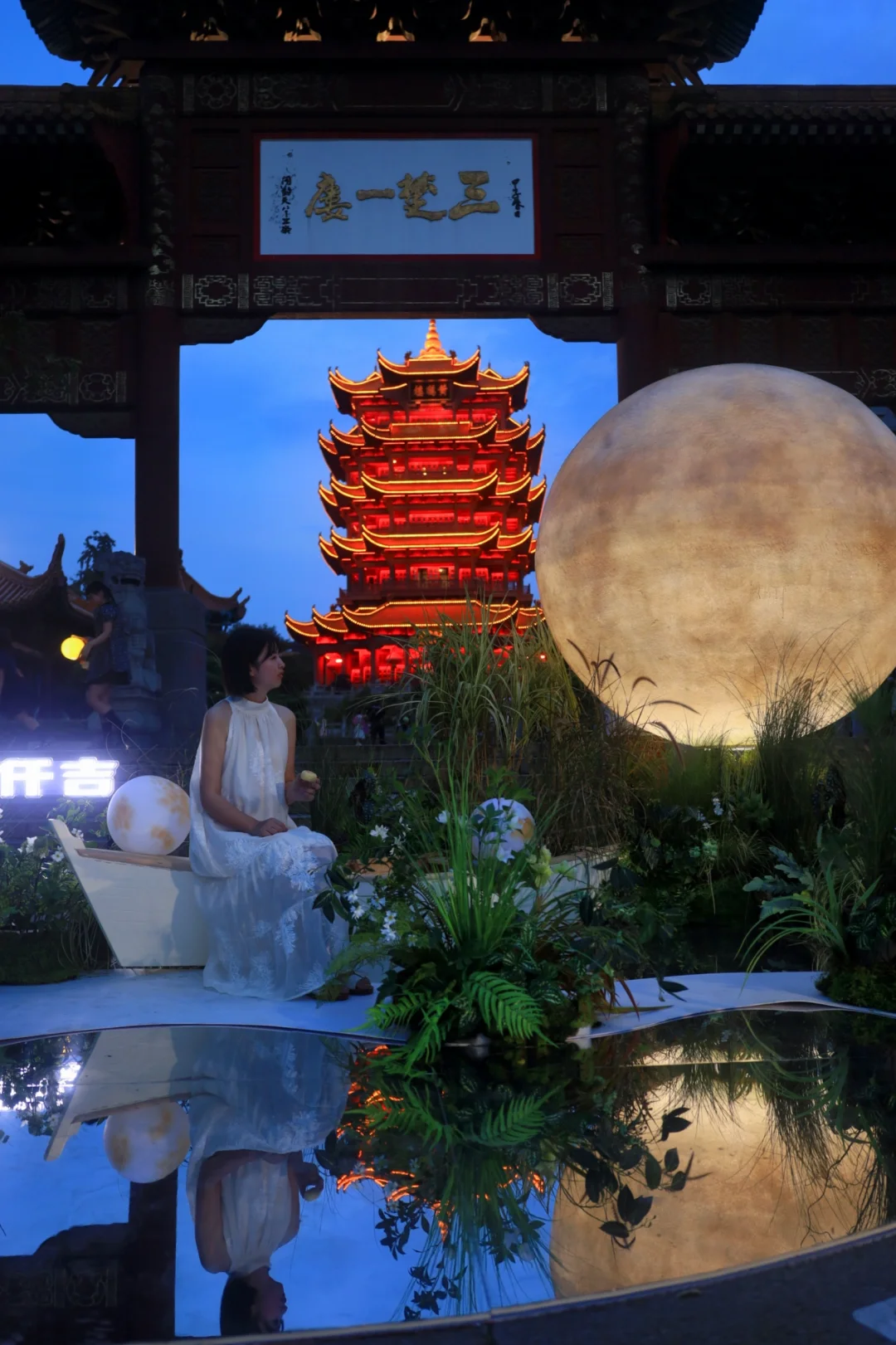 月亮船🌙和大月亮超级出片,等黄鹤楼亮灯同框合影,氛围感拉满