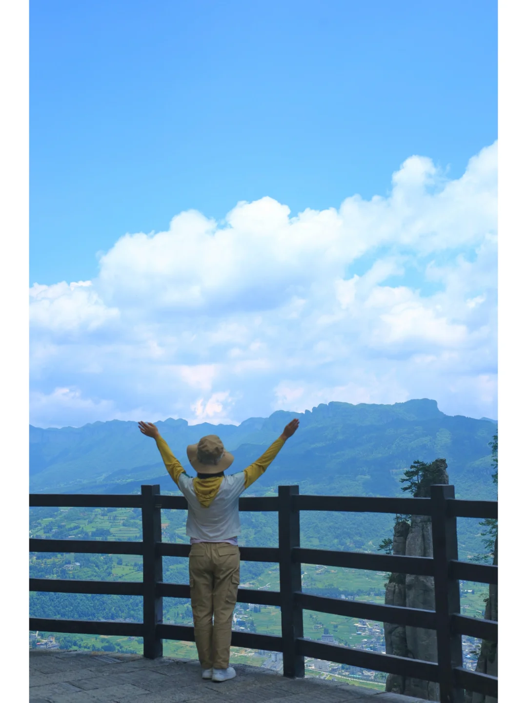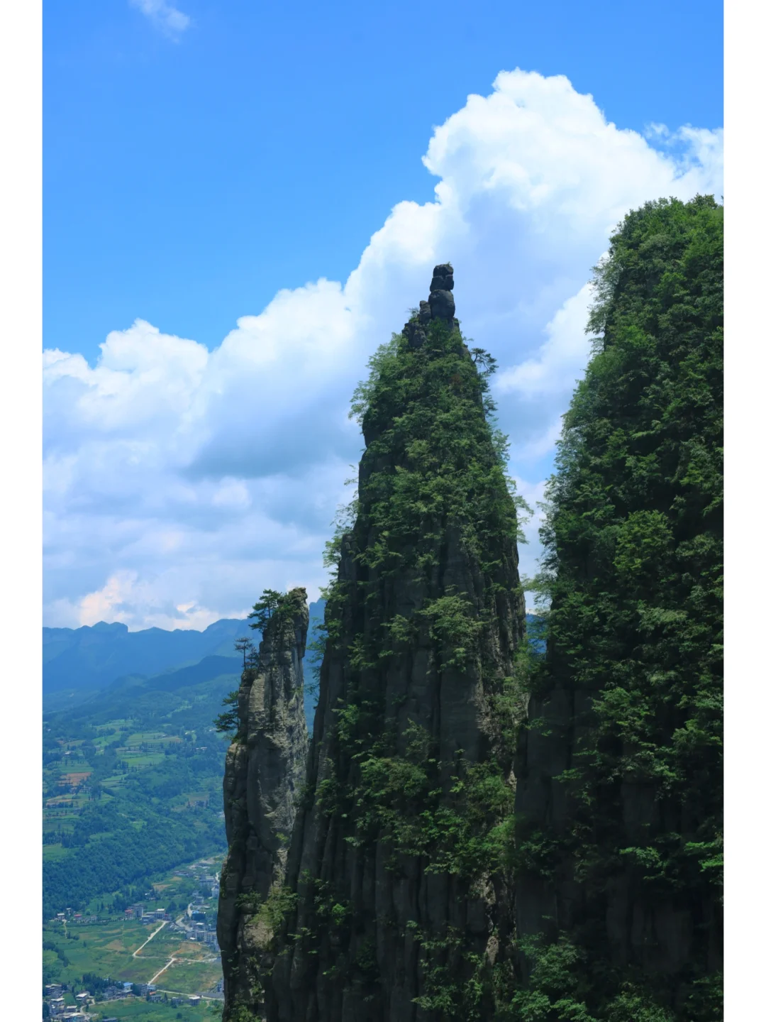 观景台视野开阔,三座岩石柱峰形成汉字“川”,出片YYDS❗️
