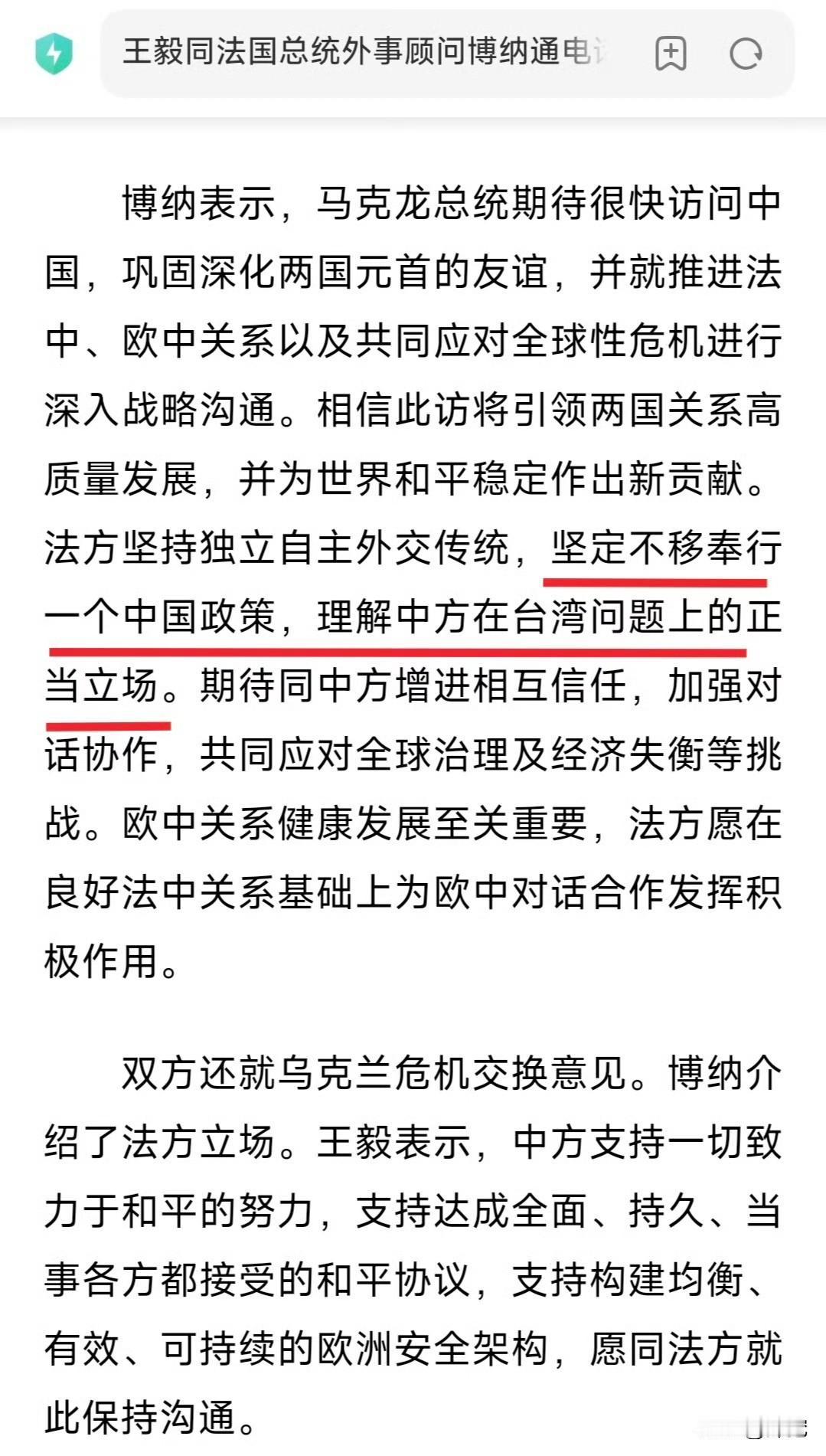 定性了:日本侵害中国了!现在五常里边我们就剩英国没通气了。所做的一切是在准备什么? 一、大国一致原则是战后秩序的基础,我们能与其他四常确认态度一致,牢牢占据战后秩序维护者这个高地,对日对台都能师出有名。 二、战争只是政治的延续,话事人们表了态,达成了政治共识,后面如果真打起来各地区话事人就没了下场参与的借口,用更小的代价达成目的。中日关系 法国涉台最新表态