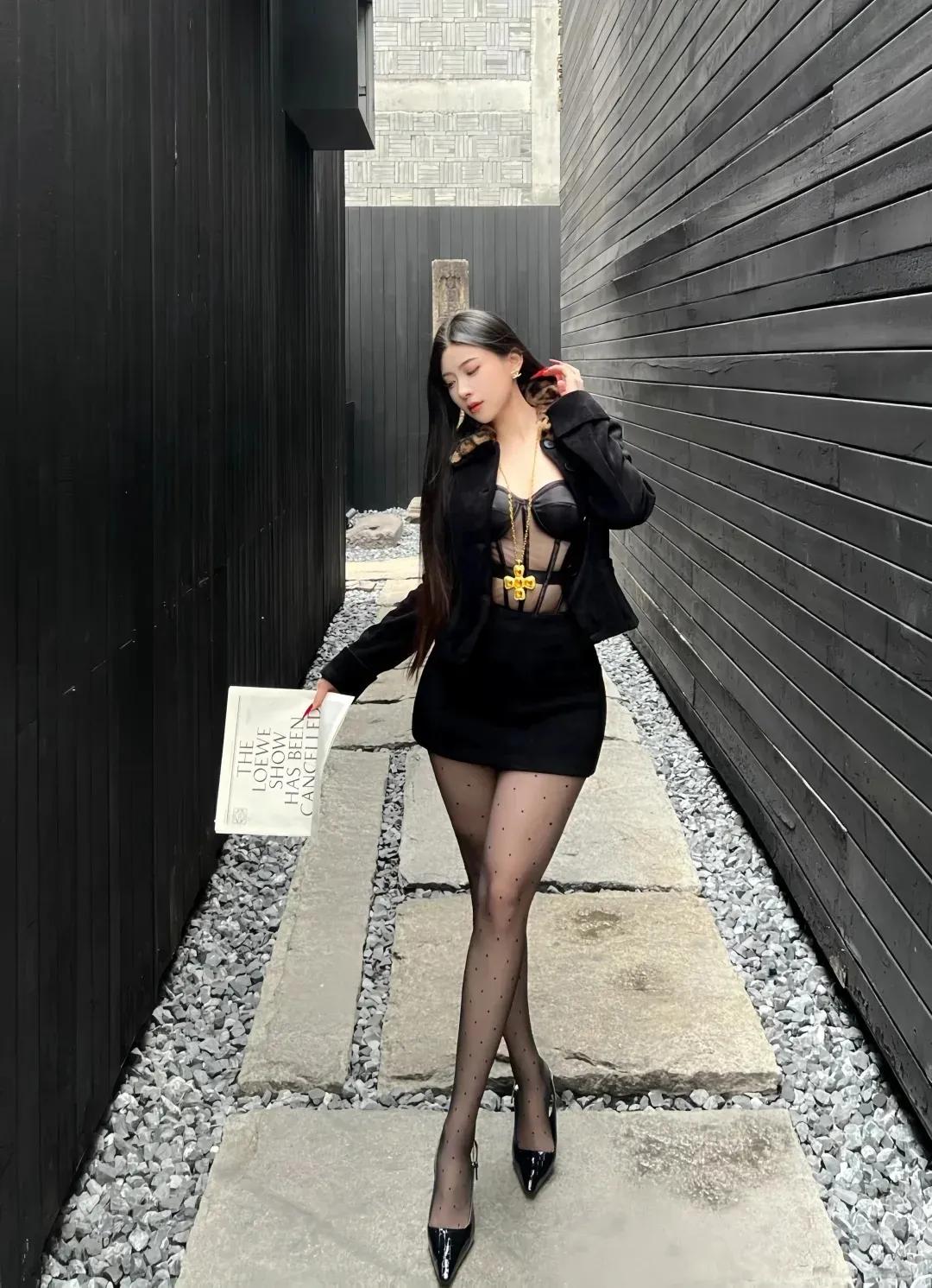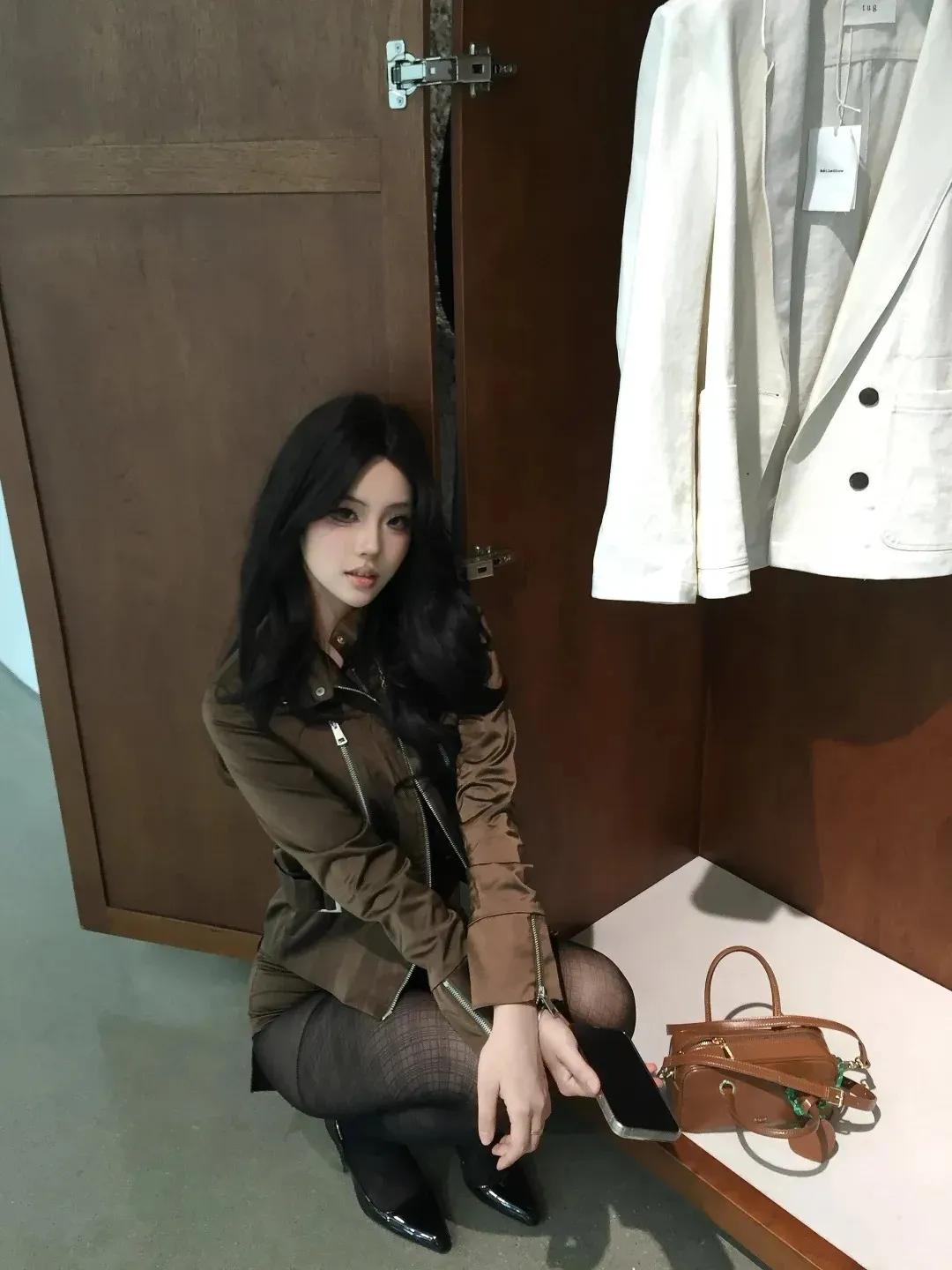 她或立于青灰巷道,黑色皮衣配工装裤飒爽挺拔,利落短发随微风轻扬,与冷硬墙面、金属管道碰撞出酷感火花,像在与冷调建筑进行一场风格对话;或身处纯白极简空间,浅杏色套装衬得肌肤胜雪,指尖轻拂衣领刺绣,浅笑间眼神明亮自信,满是对穿搭细节的精致偏爱;又或是蜷在咖啡馆沙发静坐休憩,宽松针织衫搭牛仔裙,发丝慵懒散落,眉眼舒展,尽显都市女性日常里的随性与烂漫。