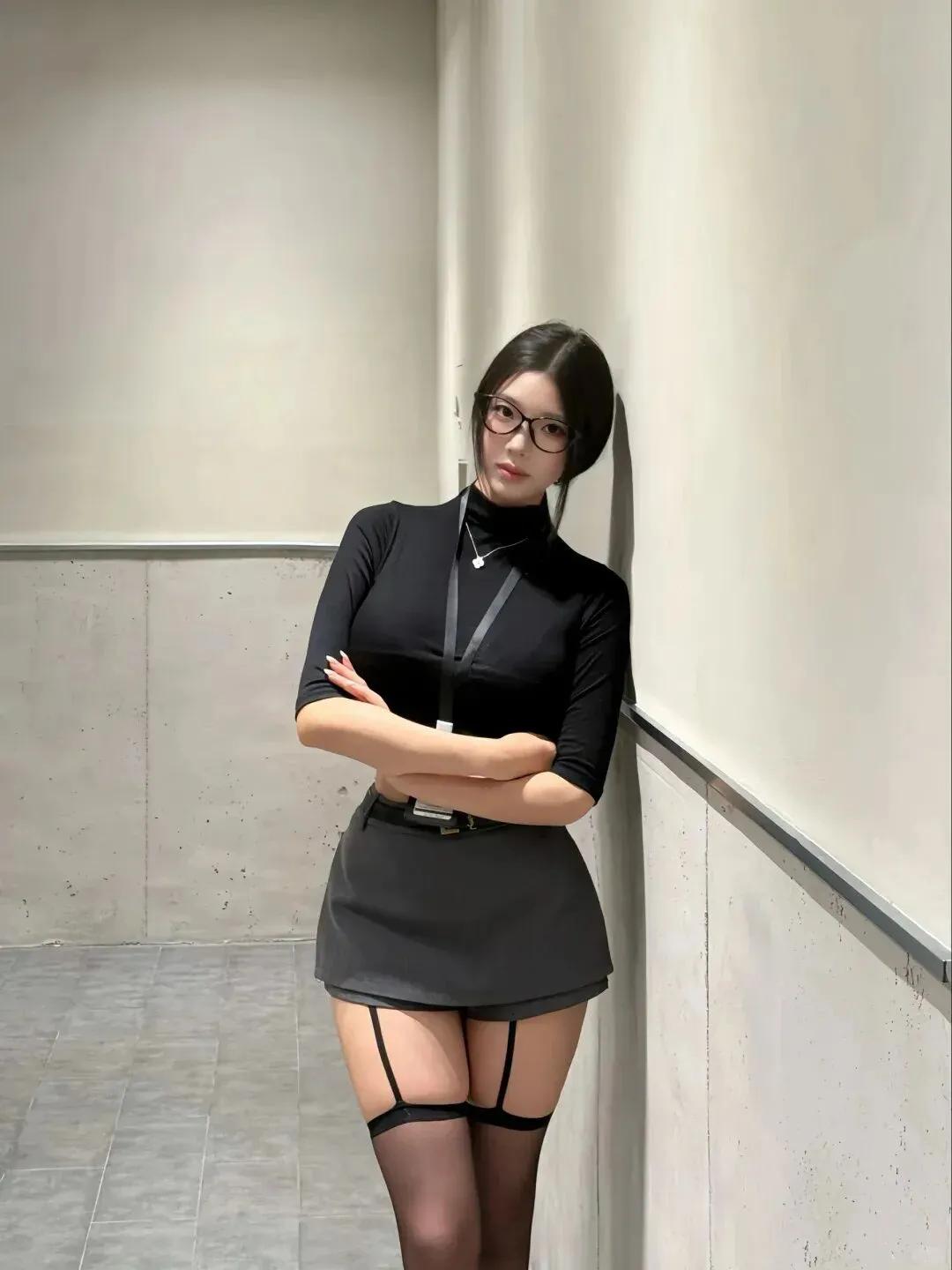 极简廊道的冷调与她的黑灰穿搭相互交融,浅灰墙面泛着柔和冷光,深黑长裤利落垂坠,同色系针织衫勾勒出简洁线条,色彩在无声中达成绝妙共鸣。她抬手整理衣领、缓步转身的每一个动作姿态,都像是在这一方小天地里的风格独白。既以挺括剪裁与利落身形,演绎出都市女性的干练格调,又凭从容神态与松弛气场,精准捕捉到现代都市的精致魅力,让这方简约廊道,因她而充满了独特又迷人的气息。