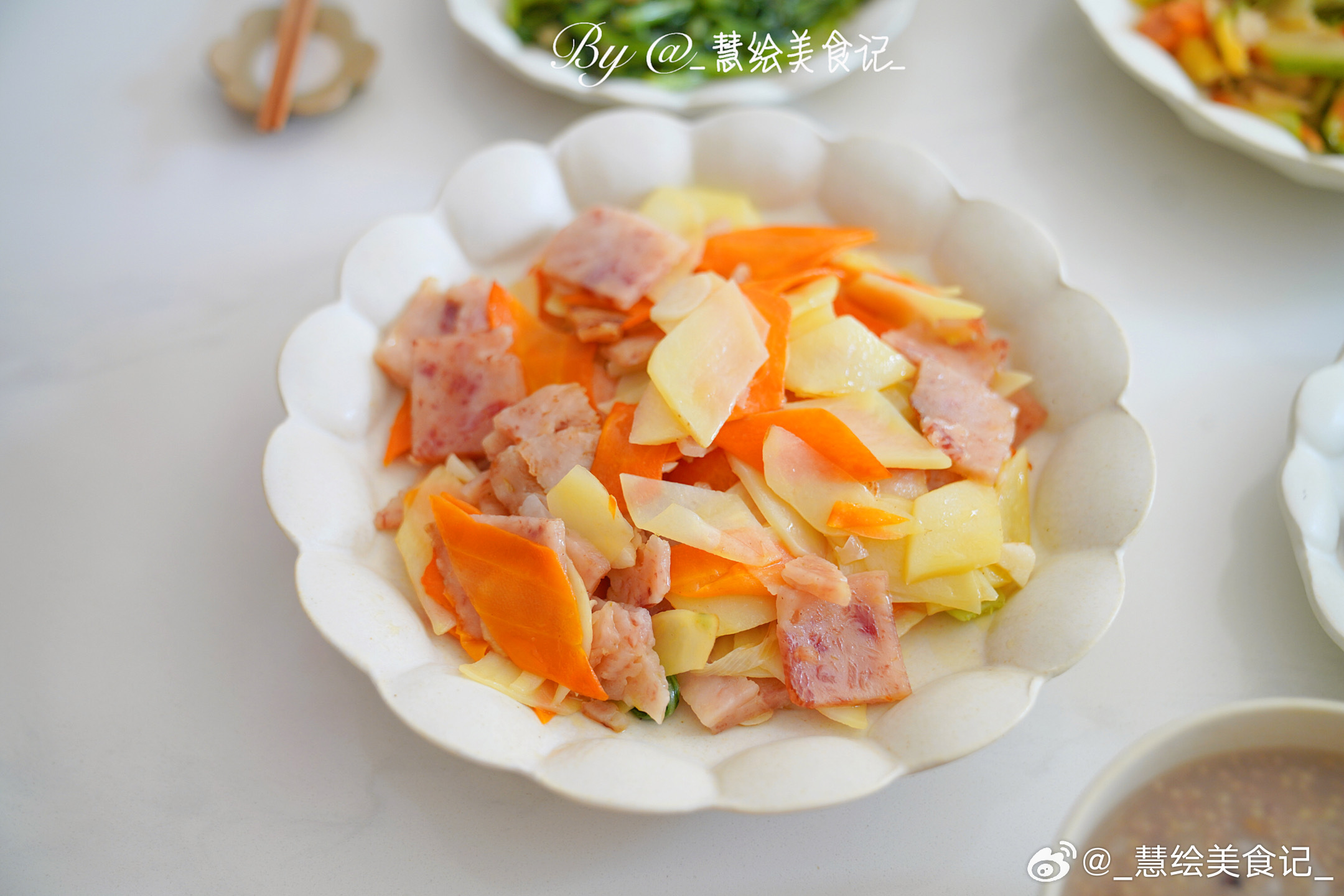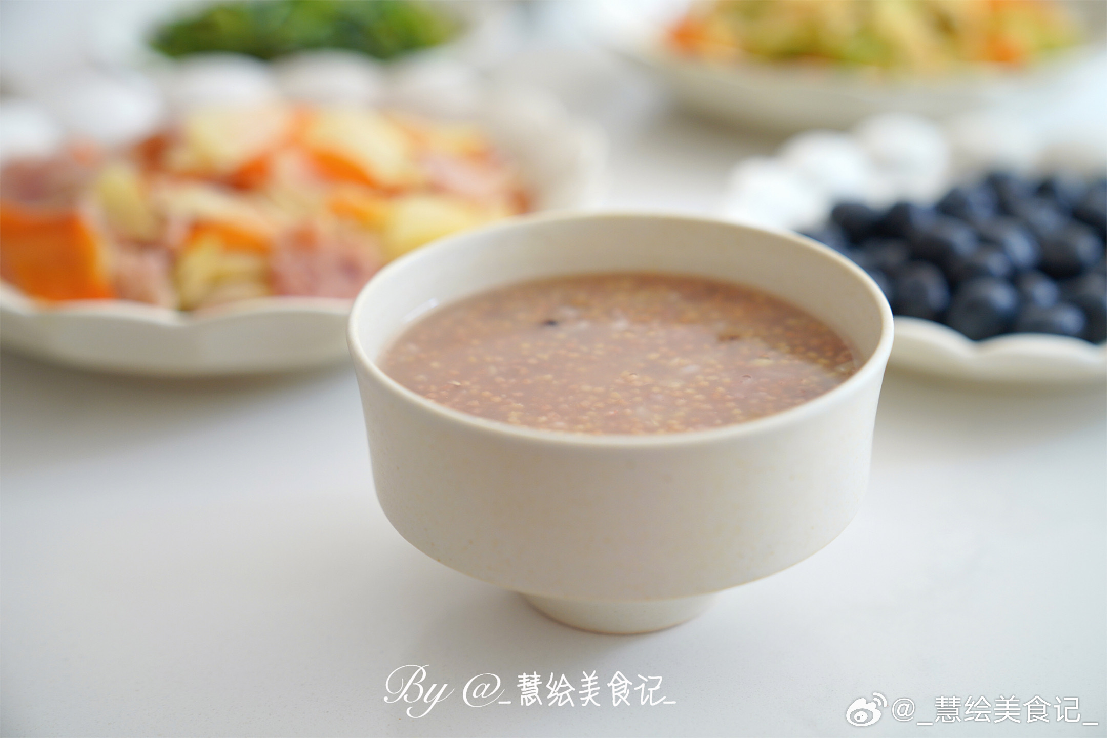 周五啦~早饭土豆胡萝卜炒焖子、蒜蓉蒿子秆、西葫芦炒鸡蛋、杂粮粥、蓝莓~温暖的时光