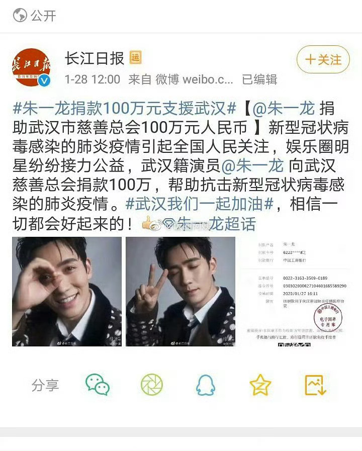 朱一龙向香港捐款100万演员朱一龙向香港大埔火灾受灾同胞捐赠100万元人民币,传递一份关切的支持多年来朱一龙一直在默默做公益,作为公众人物传递正能量!希望香港早日渡过难关,大家都平平安安🙏