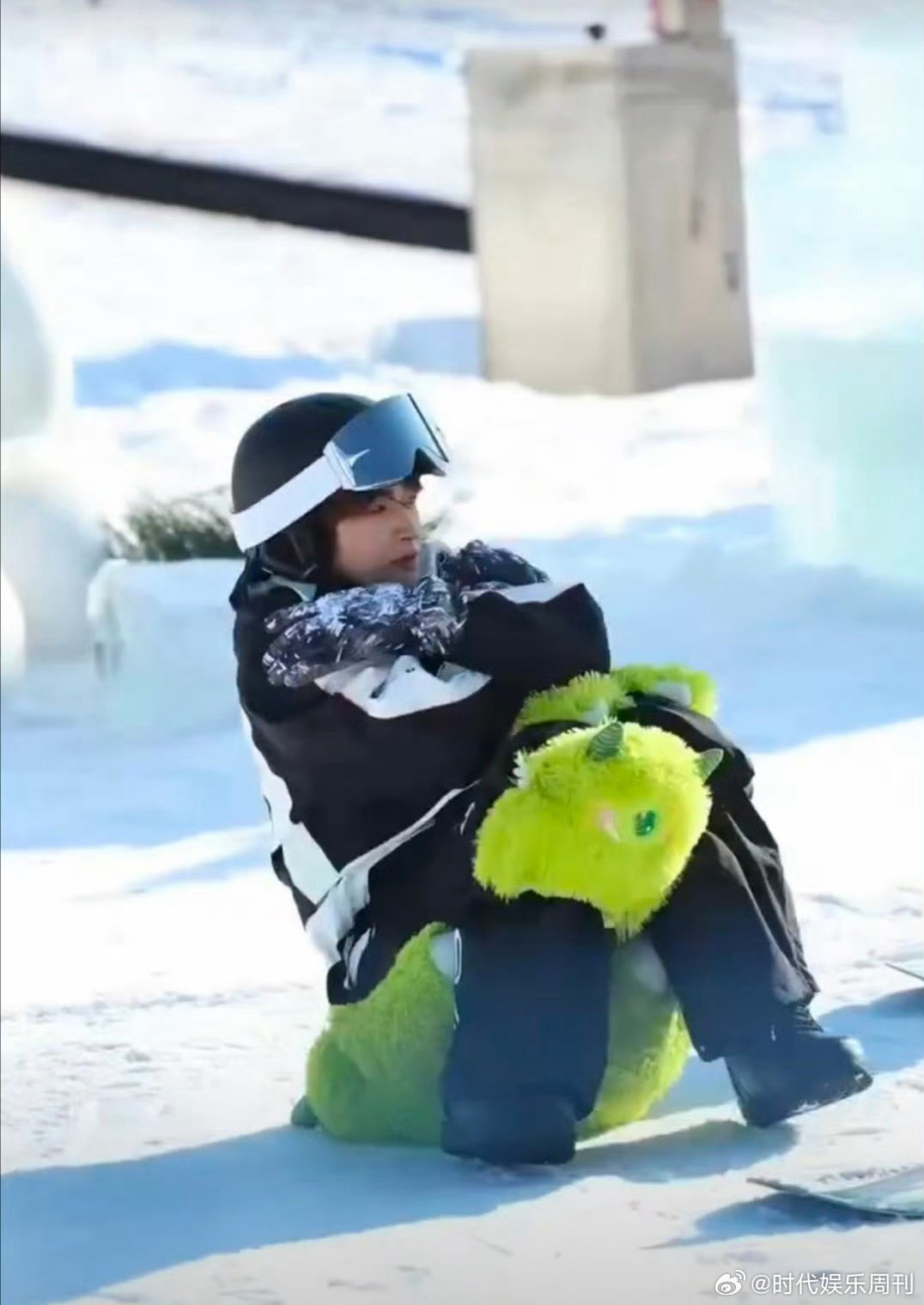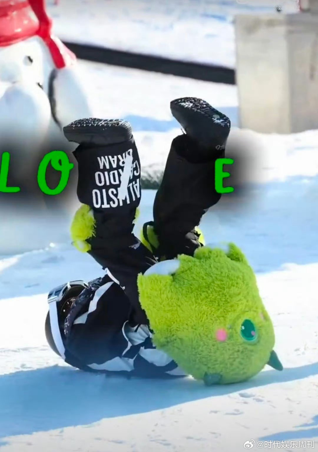 刘宇滑雪热身也不忘了比love你好星期六 天呐!刘宇·雪宝2.0太可爱爆啦!戴绿