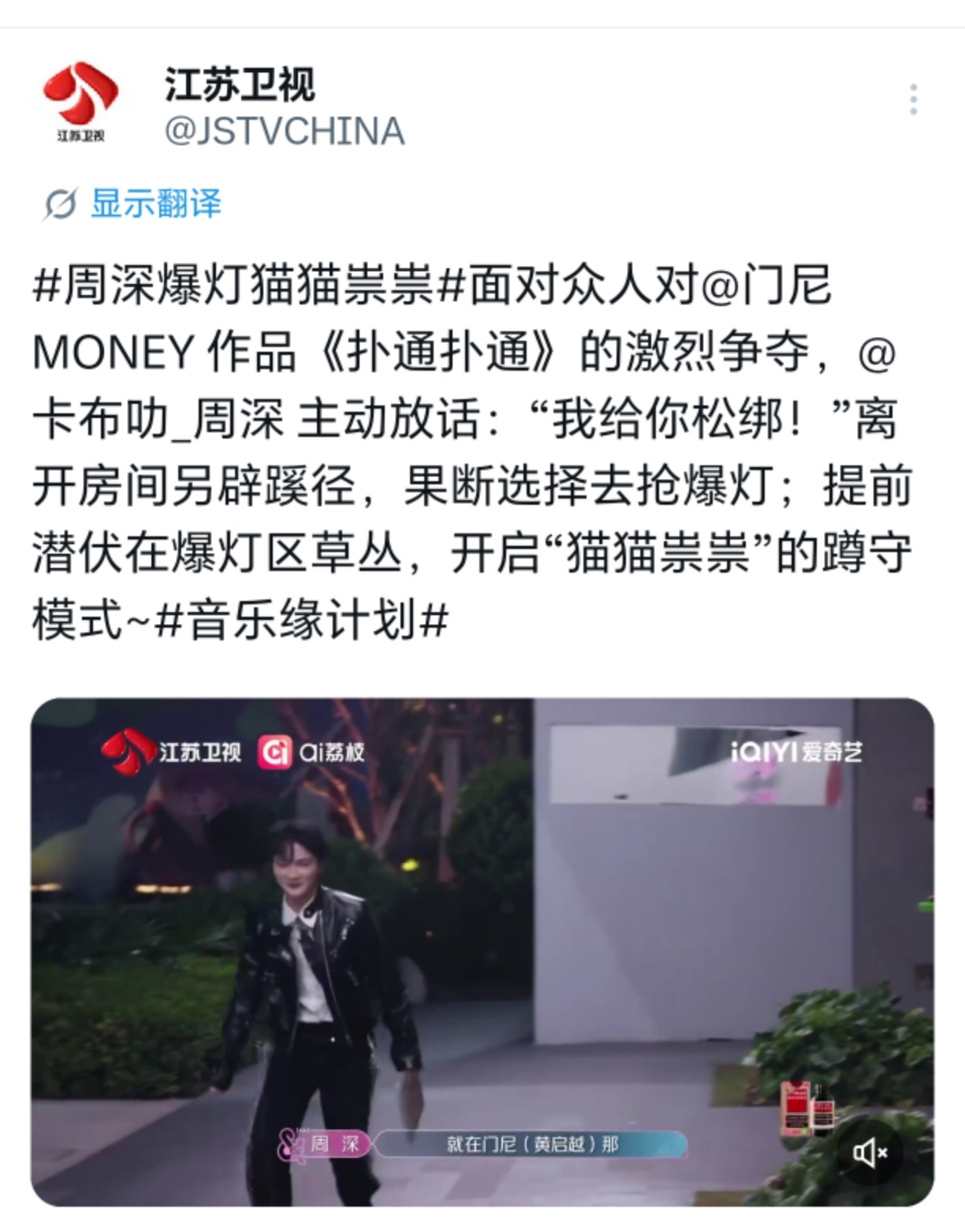 周深 📣 11.28 缘计划物料 📣【江苏卫视】海外平台更新了EP6深深《