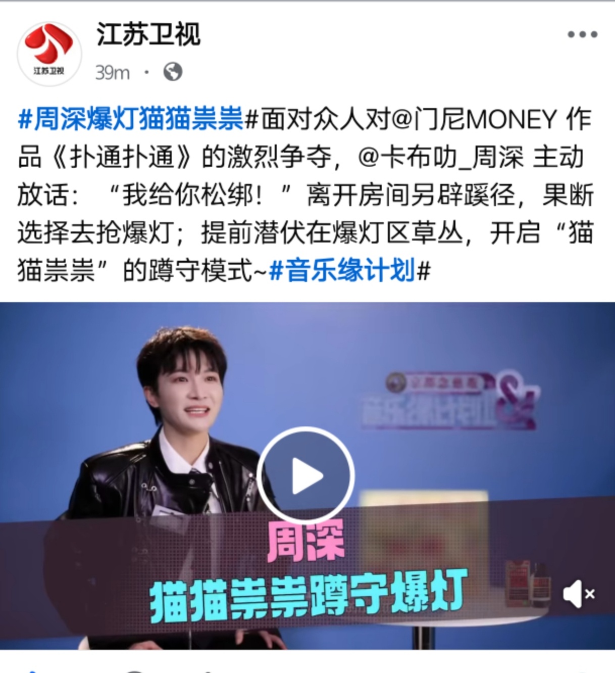 周深 📣 11.28 缘计划物料 📣【江苏卫视】海外平台更新了EP6深深《扑通扑通》的相关物料一起来完播,多多四连【⭐🍎🧱】