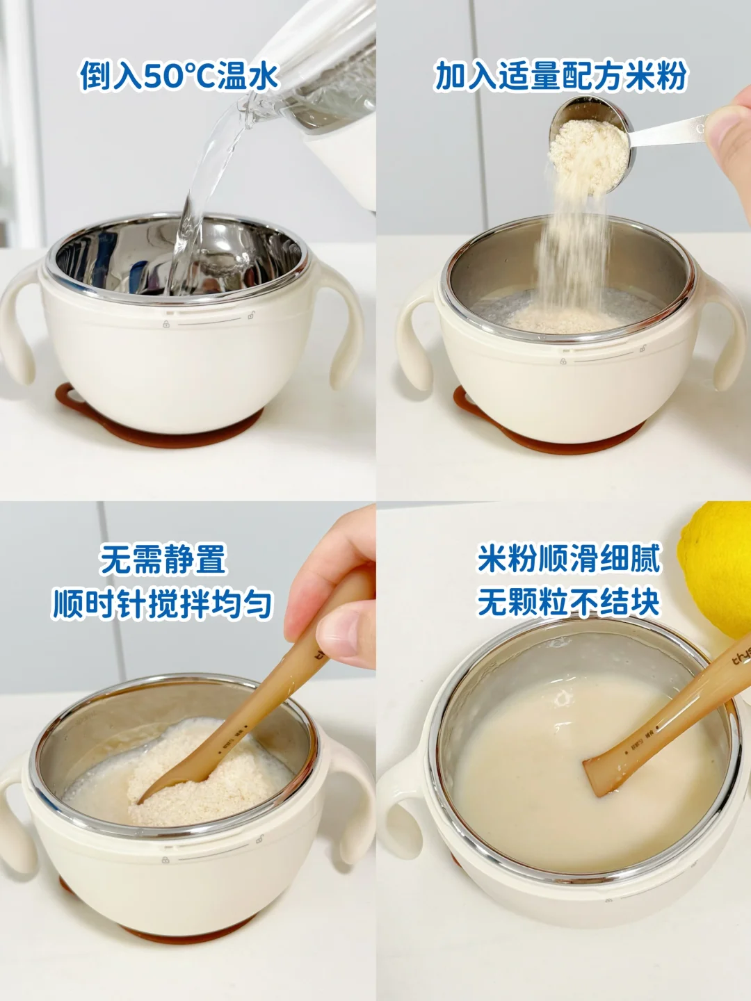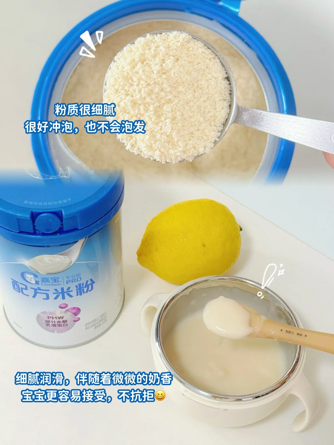 5、宝宝易敏感:第一口米粉换成【部分水解配方米粉】,低敏且补足营养。