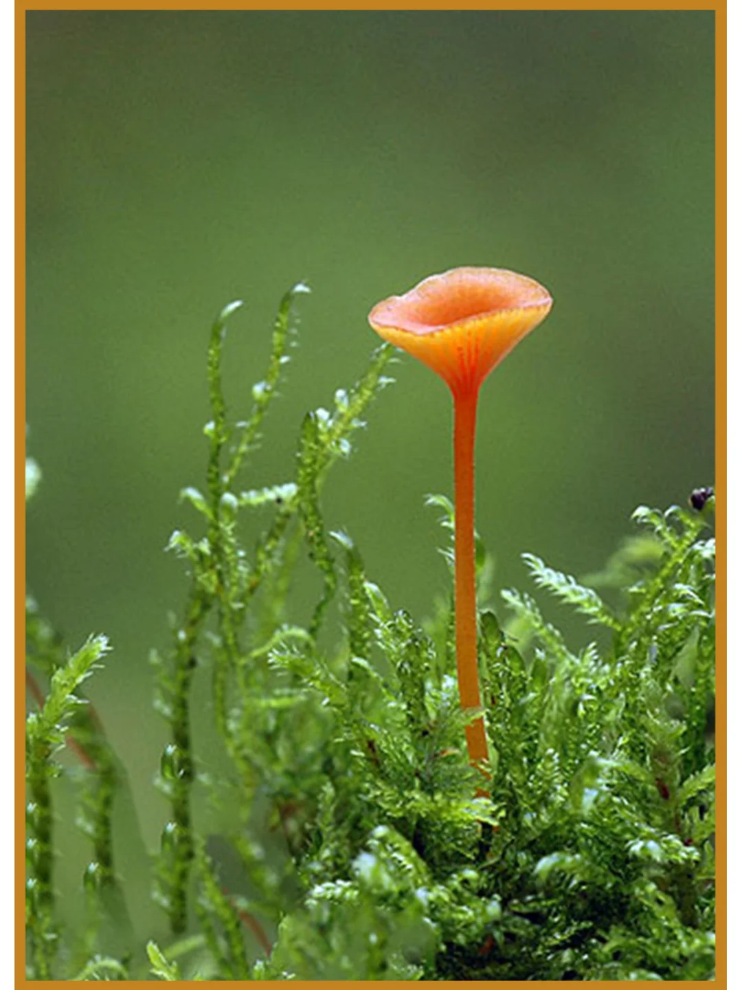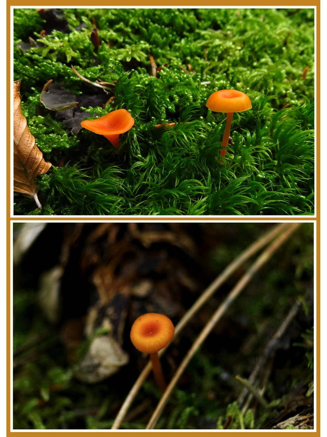 橙色苔藓菇 rickenella_fibula_ 学名:瘦脐菇 科:匐担革菌科 图片©manatarka.org ©josef hlasek 不可食 该菌个头很小,长在苔藓上,实际大小还没有我们的小拇指高 通过显微镜可以看见它通体都长有细绒毛~