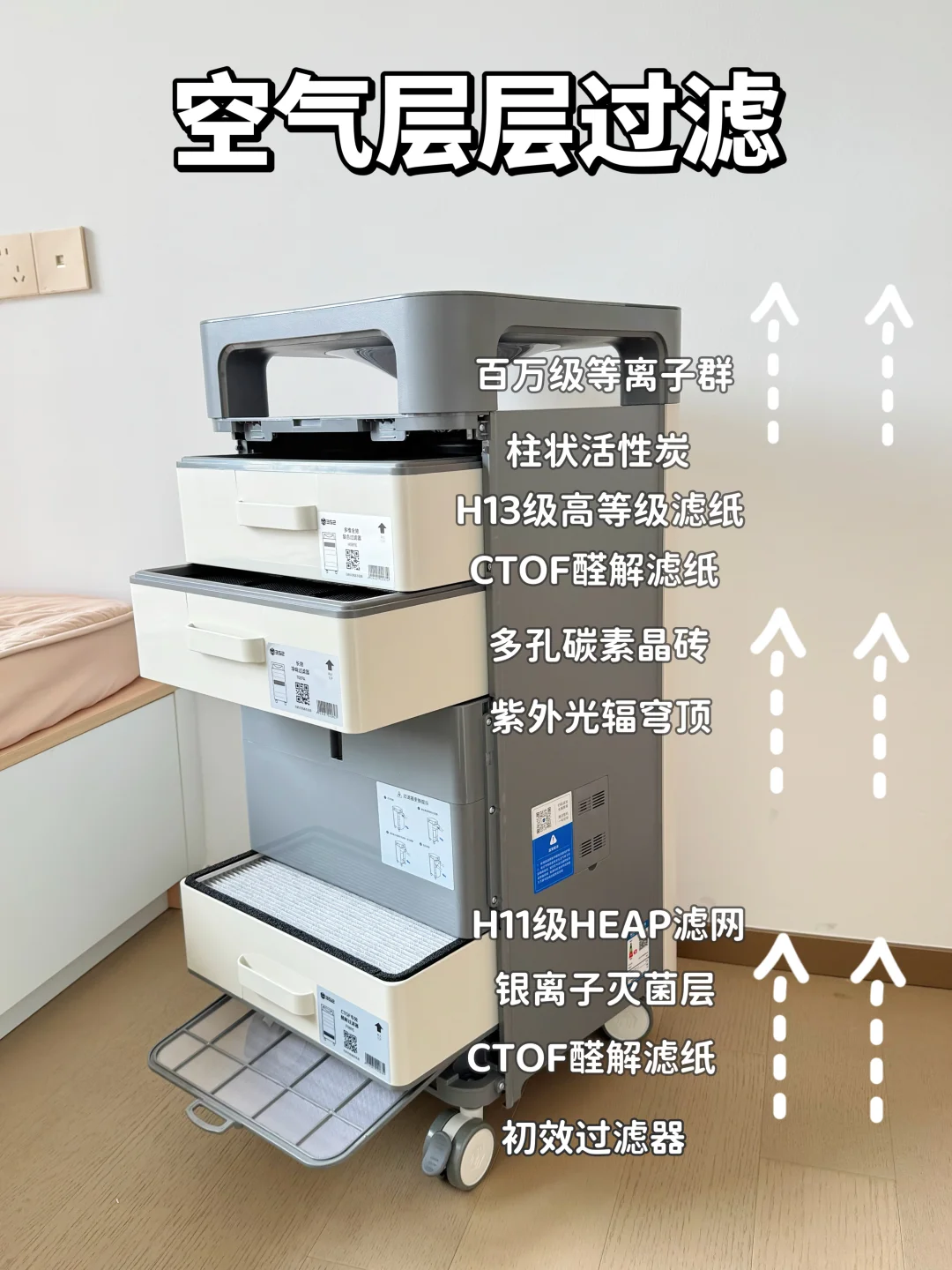 🔹而且初效滤网可以拆下来冲洗的,每周洗一次,冲下来的灰黑絮絮吓人不说,还能省下频繁换滤芯的钱💰,很符合我们这种经济实用型家庭的需求。另外,针对尘螨、过敏原和PM2.5的HEPA滤网也是13级,净化效果还不错。