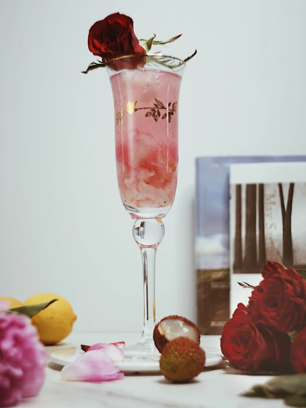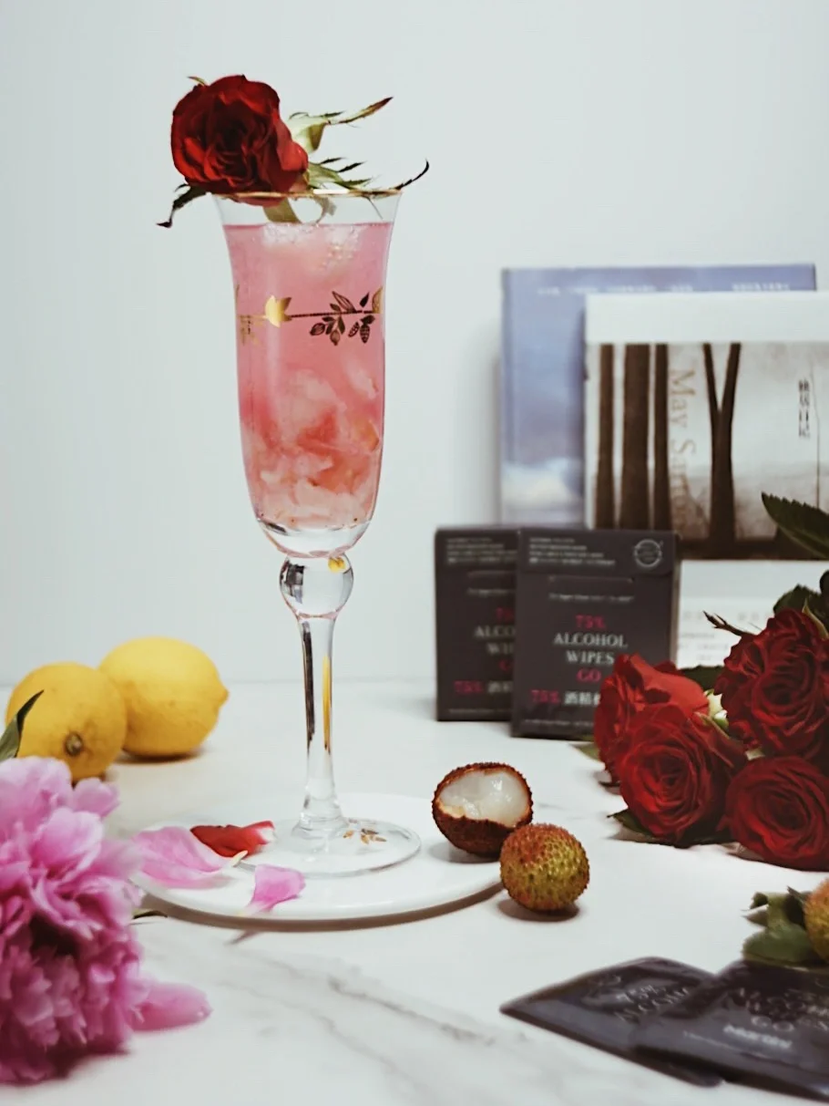 🥀香甜的荔枝果肉与玫瑰的浓烈恰到好处的融合在一起,还未饮用,这阵阵香气就扑入鼻尖。轻饮一口,中间夹着清凉爽口,略带辣味的金酒。
