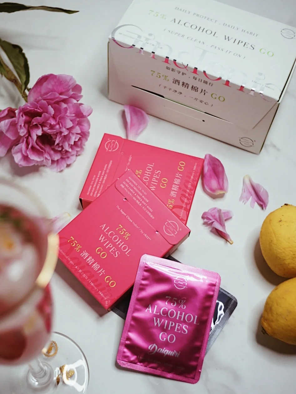 🍸调饮这杯个性鲜明、花香馥郁的鸡尾酒,灵感来自于ch22酒精棉片的新品主题:酒⻤俱乐部🎫与以往酒精棉片不同🩹撕开包装,周身都散发着淡淡的鸡尾酒香气🍸酷黑的包装是玫瑰⻢天尼⾹型🥀香调是玫瑰、荔枝、柠檬片和金酒组合而成。很难不让人上头着迷。另外还有黄瓜🥒金汤力香型和草莓🍓戴琦莉香型。都是独立的便携包装。装进包里🧳随时都可以使用。