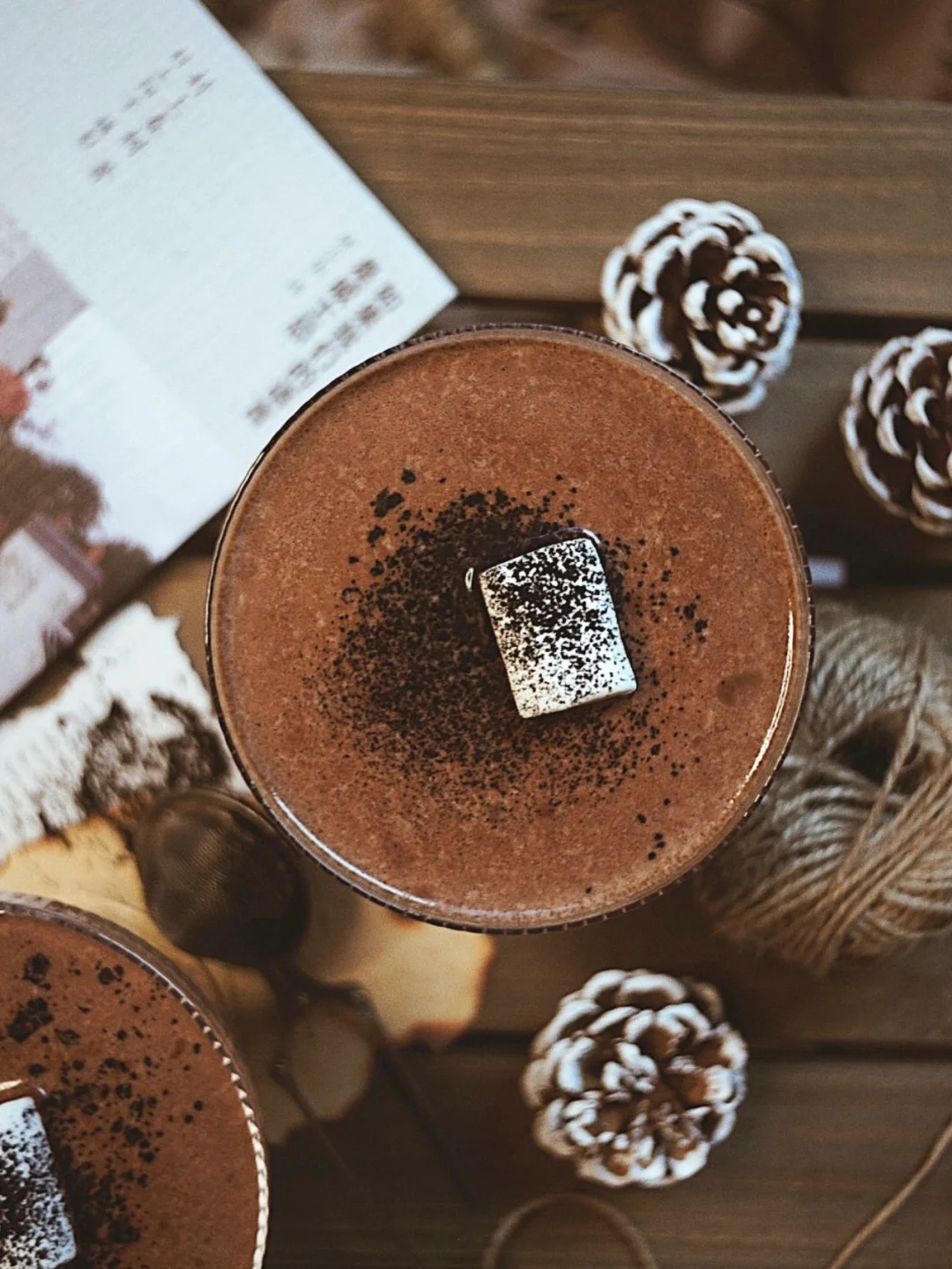▪️倒入杯中,表面放棉花糖,撒上可可粉装饰