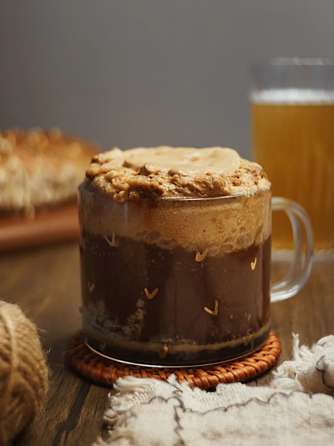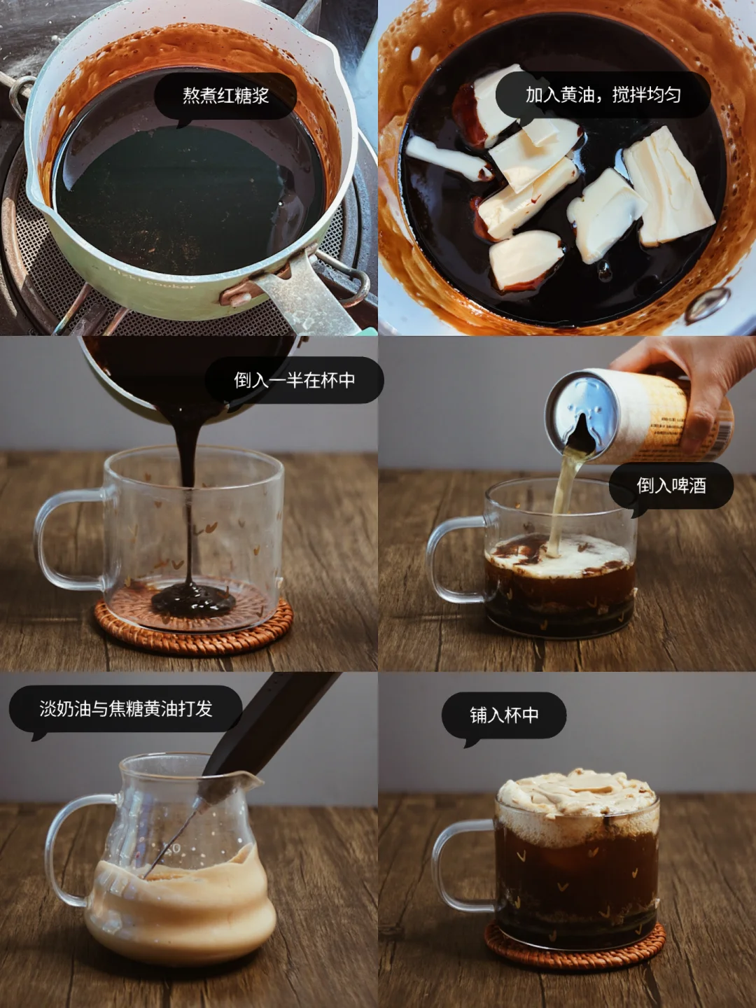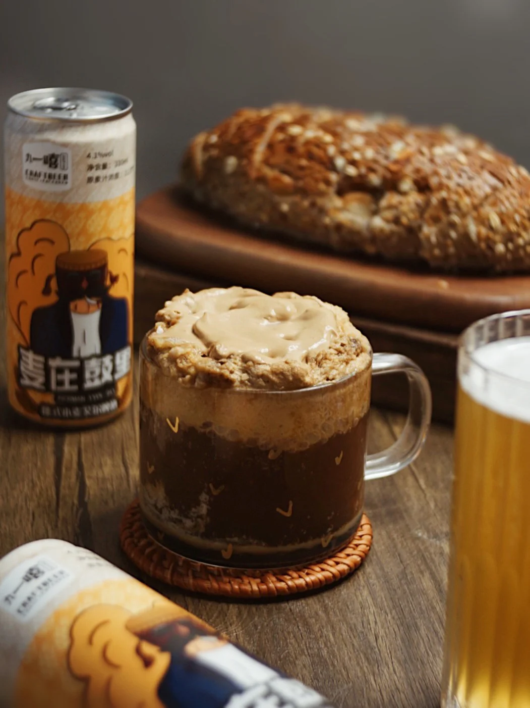 去了环球影城,回到家发现还是没有魔法🔮在车站等了半天,红色的小火车也没有来接我🚂 但是❗️在霍格沃茨每年去霍格莫德村的学生都会喝的黄油啤酒🍺我在家就可以实现一下。 👩🏻‍🍳【原料:】 红糖50g 黄油25g 淡奶油100g 九一嘻啤酒 👩🏻‍🍳【做法:】 ©️红糖与少许水放入锅里,小火加热冒泡以后,放黄油。 ©️搅拌至浓稠以后取一半,倒入杯中 ©️倒入九一嘻啤酒8分满,搅一搅 ©️淡奶油打发至浓稠的酸奶质地,与另一半黄油焦糖打发均匀 ©️铺入杯中 - 浓郁的焦糖和香甜的奶油结合,搭配九一嘻德式小麦精酿啤酒,一点也不会觉得甜腻,入口清爽有回甘,还有麦芽的香气。 📜就像公元前1552年,埃伯斯纸草文稿里写的那样——愿你拥有“永不凋谢的面包和永不变酸的啤酒” 在初雪的夜晚独居在家🌃大口喝下这杯德式小麦艾尔啤酒,绵密充盈的气泡发出愉悦的呲呲声🫧烘烤麦芽带来橙黄色的浑浊酒体🍺入口是丝滑绵柔的口感,还可以尝到浓浓的酵母味道🌾不仅保留了传统啤酒的微微苦感,还带着香蕉🍌和烤面包的风味🥖饱满的香气充斥整个口腔。 喝前需要稍微冷藏一下,将瓶子倒置2分钟⏳让瓶底沉淀的酵母与酒充分融合,这样味道的体现会更明显