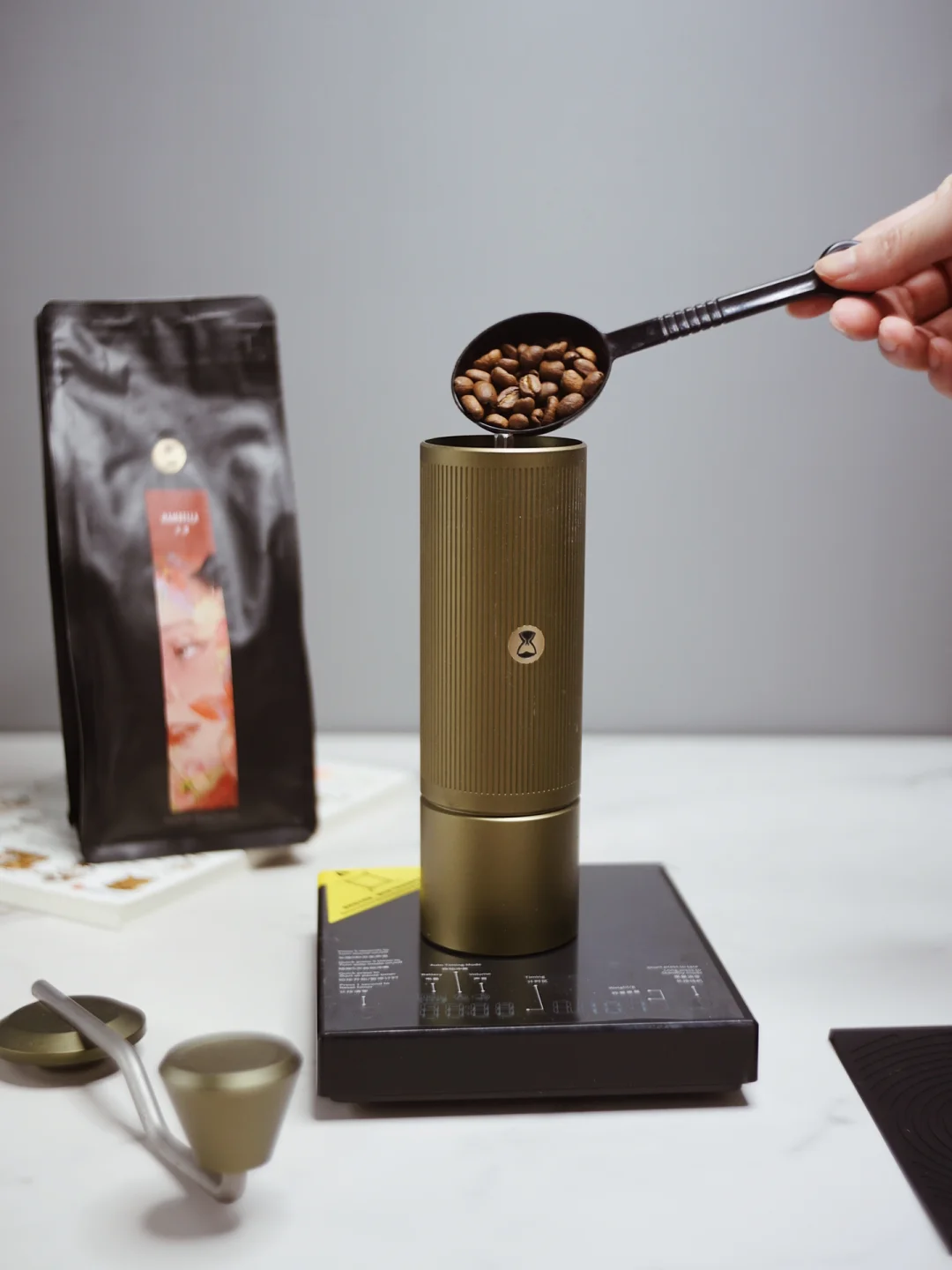 比起电动的,我更喜欢手摇的仪式感,我用的这款是属于专业级的,点对点的数字调节盘⏲研磨刻度精准到0.5,即使是浅烘的豆子,研磨的过程中,也丝毫不费力,对应的咖啡豆,我调节在14格的粗细