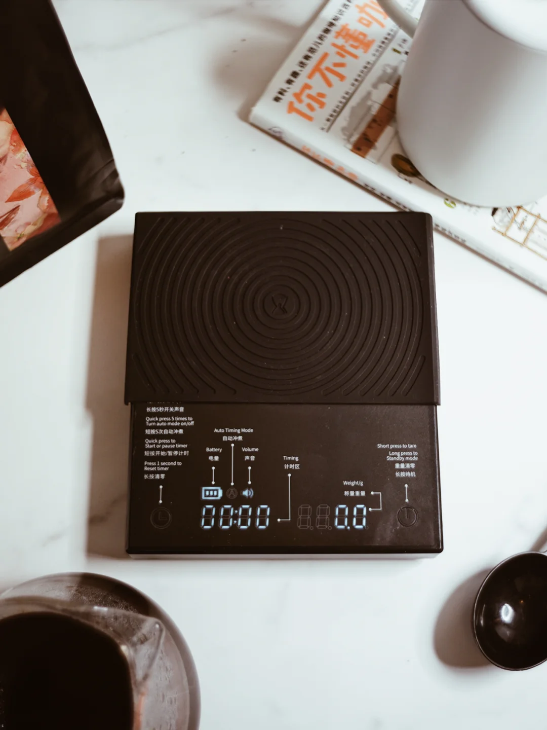 入坑这么久,个人认为电子秤是必不可少的。豆子冲煮的时间、重量、流速以及水粉比等等,都需要靠这个电子秤来把控。