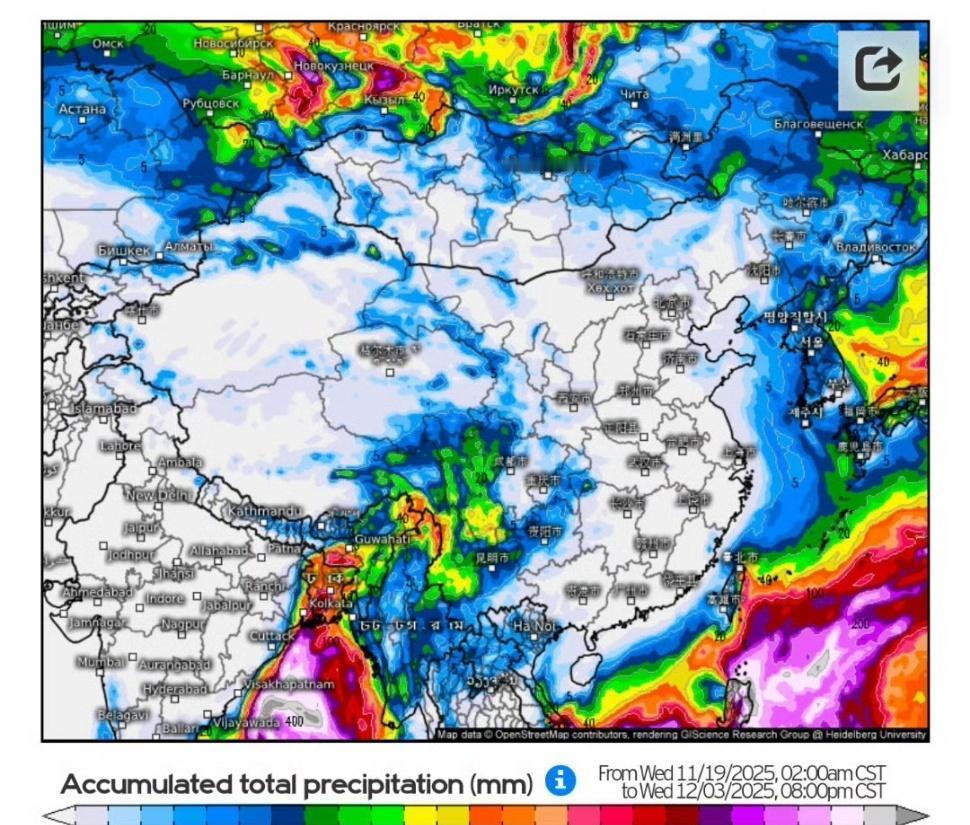 咱们沈阳11月以来累计降水量只有1mm,如果本月剩余10天仍没有降水,那将刷新11月最少降雨纪录。 沈阳未来五天仍然没有降水,空气越来越干燥,静电打人越来越疼,双眼越来越爆皮,手机给出沈阳26日夜间暴雪,明显抽风。 关注11月下旬沈阳的冷空气,是集结下,还是分批南下,能否带来今年冬天第一场意义上的雪,随时观察……