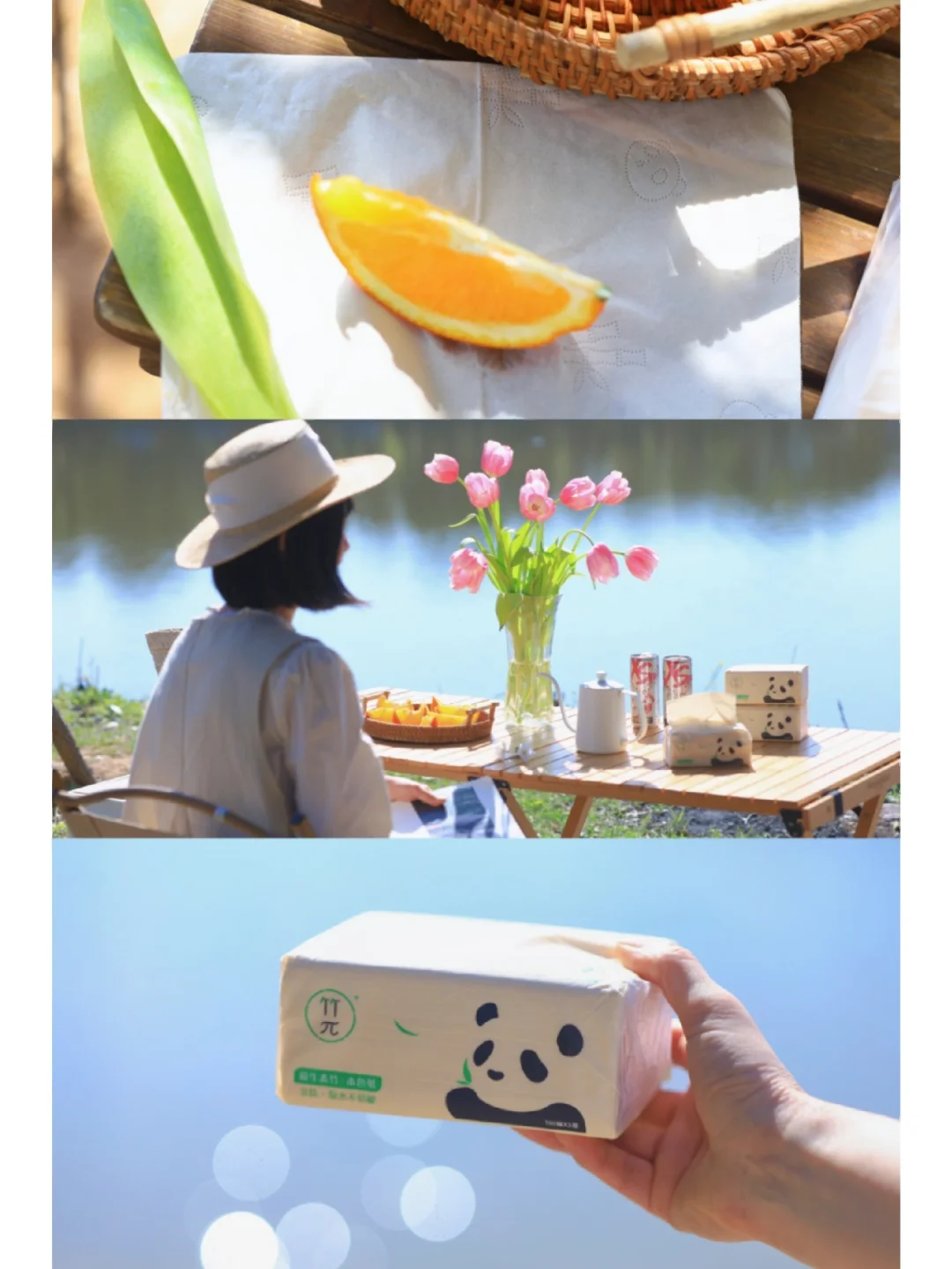 ✔️每次露营抽纸必不可少,这次带上了恒安竹派熊猫纸🎋三层柔韧不易破,吸水吸油性也很好,吃汁水丰盈的水果用它保持清爽再合适不过啦
