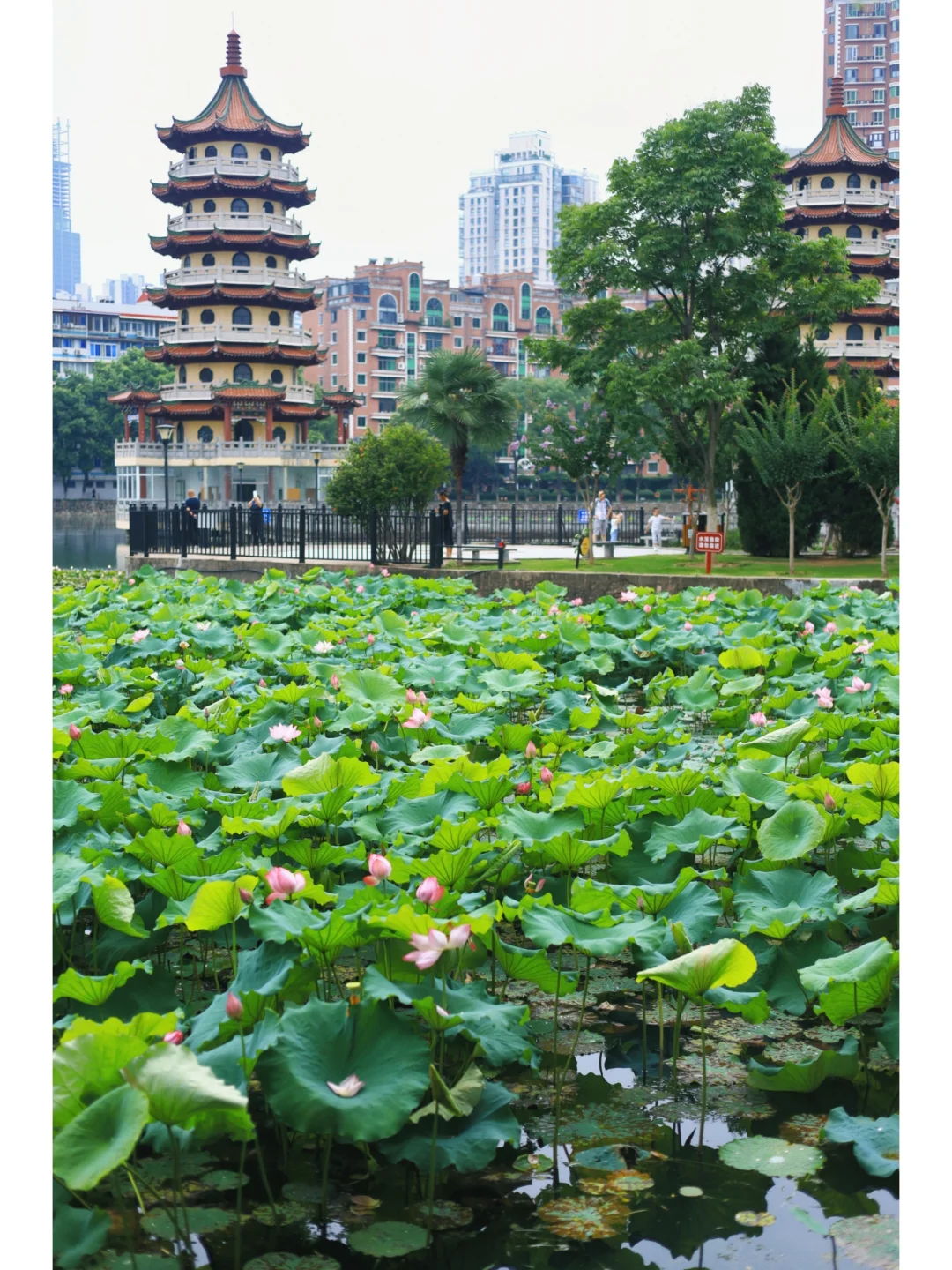 ✔️被低估的小众公园,湖心小岛形似缩小版台湾岛,龙虎双塔也是仿造台湾建造,现在荷花、睡莲开的正好