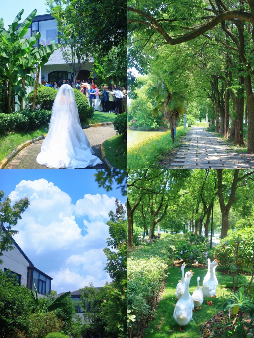🌿谁懂啊❗️去参加朋友婚礼,太适合拍照啦📸一个忍不住拍了几百张图 🌿拍了3个不同的景,户外草坪和鲜花💐甜品台🍰婚礼布置太美了,好像走进法式莫奈花园 🌿湖边绿道吹着风,看着棉花糖一样的云朵,大白鹅在小黄花里遛弯,有被治愈到,傍晚还能看晚霞绝绝子🌅 🌿用餐是在带花园的独栋别墅里,复古又欧式,仿佛置身童话城堡🏰 🏠东湖花园里