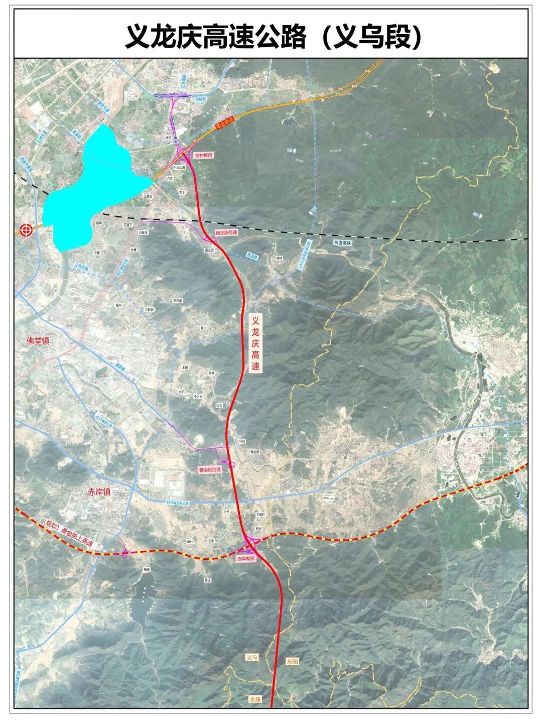 义龙庆高速义乌段作为整条高速公路的起点段,起点位于G1512甬金高速徐村互通处,主线长约16.5公里,设计速度100公里/小时,采用双向六车道高速公路标准,路基宽度33.5米。义龙庆高速公路金华段概算总投资约296.3亿元,其中义乌段总投资约85.24亿元。义乌段线路自起点向南下穿杭温高铁,经佛堂镇南王店村,跨越南江,沿双林寺风景区西侧、赤岸镇东侧布设,与规划甬金衢上高速公路交叉并预留赤岸枢纽互通,随后通过南岩山隧道进入永康境内,计划2030年建成通车。今天义乌段先行开工点的开工,意味着义乌段关键控制性先行工程已进入施工阶段,将为义龙庆高速义乌段全线推进打下坚实基础。