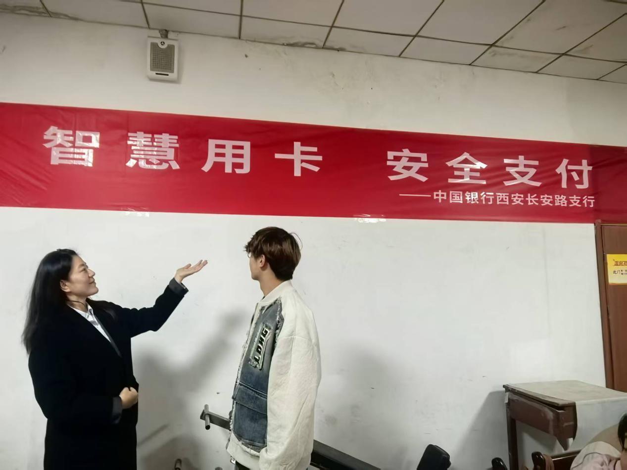 三秦都市报-秦闻讯(记者李佳)随着移动支付普及和信用卡进校园,"扫码付款""信用消费"已成为大学生日常消费的高频场景。便捷的支付方式为校园生活添彩的同时,各类针对学生群体的诈骗陷阱、用卡风险也悄然滋生。中国银行西安南二环支行员工深入校园,帮助大学生树立正确消费观,掌握智慧用卡技巧,筑牢支付安全防线。