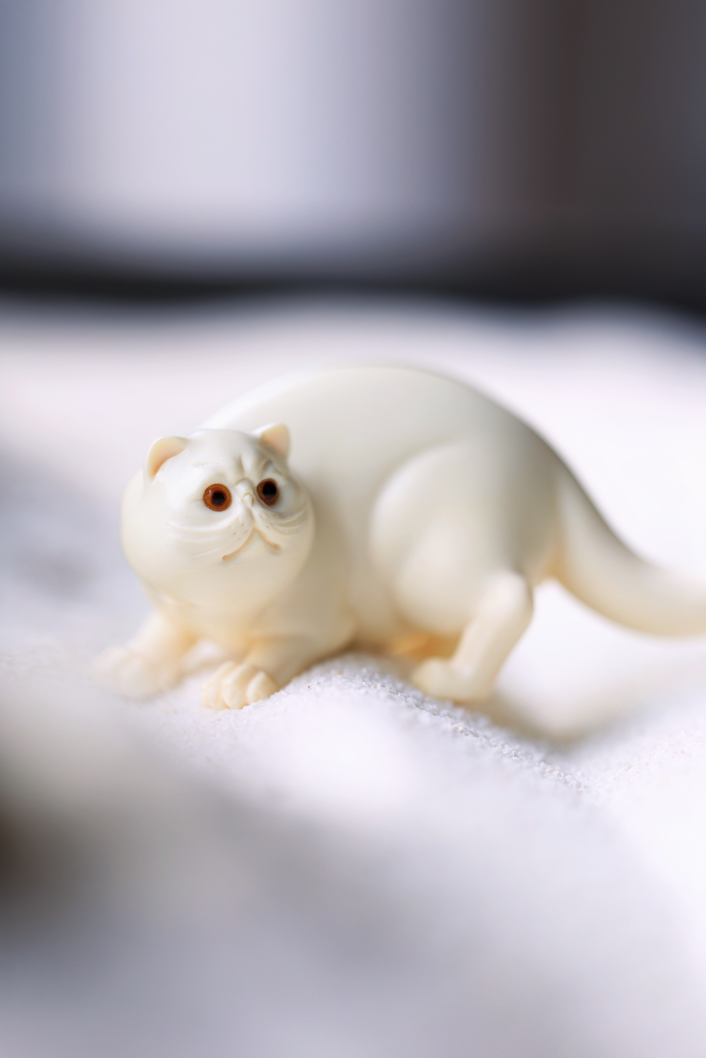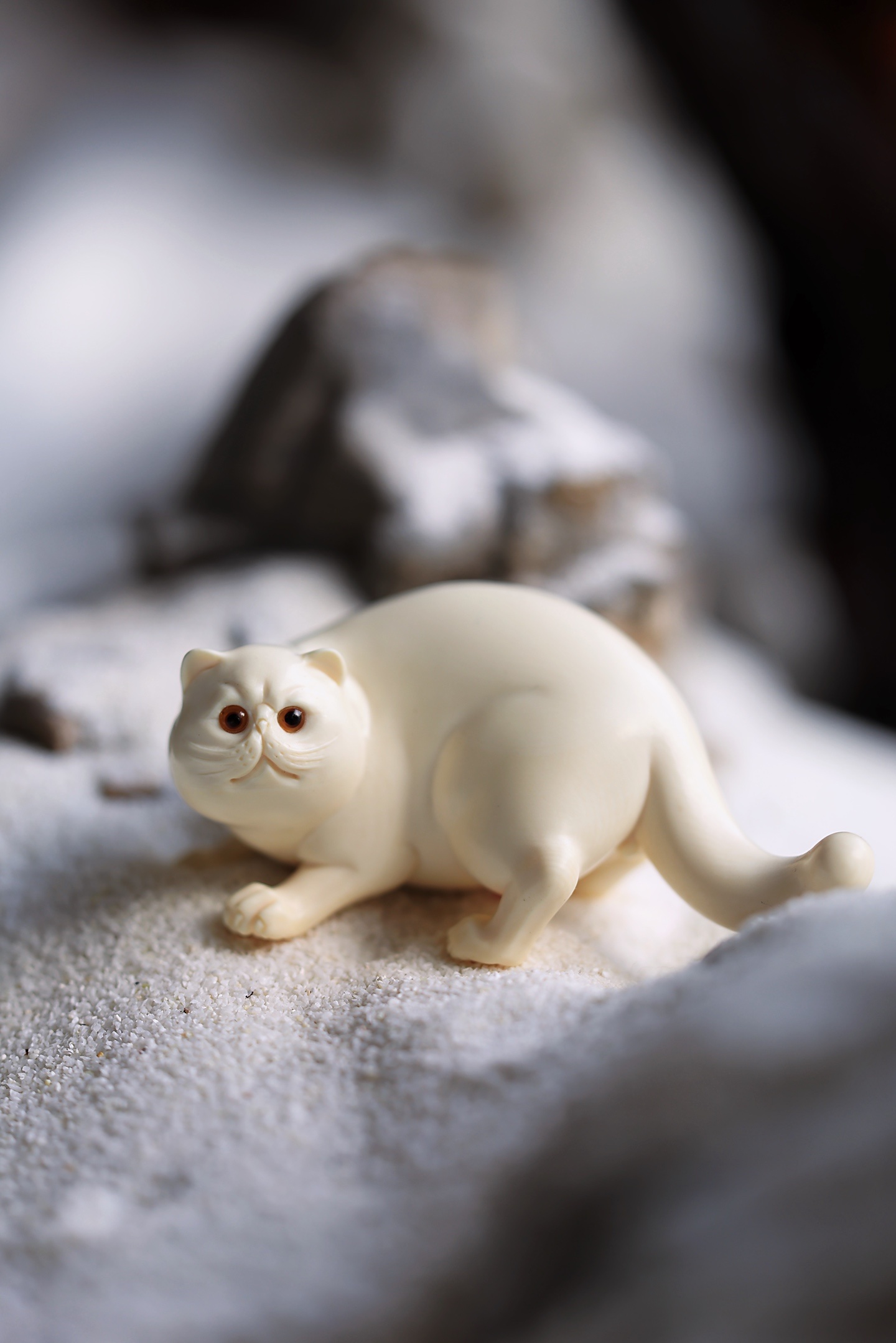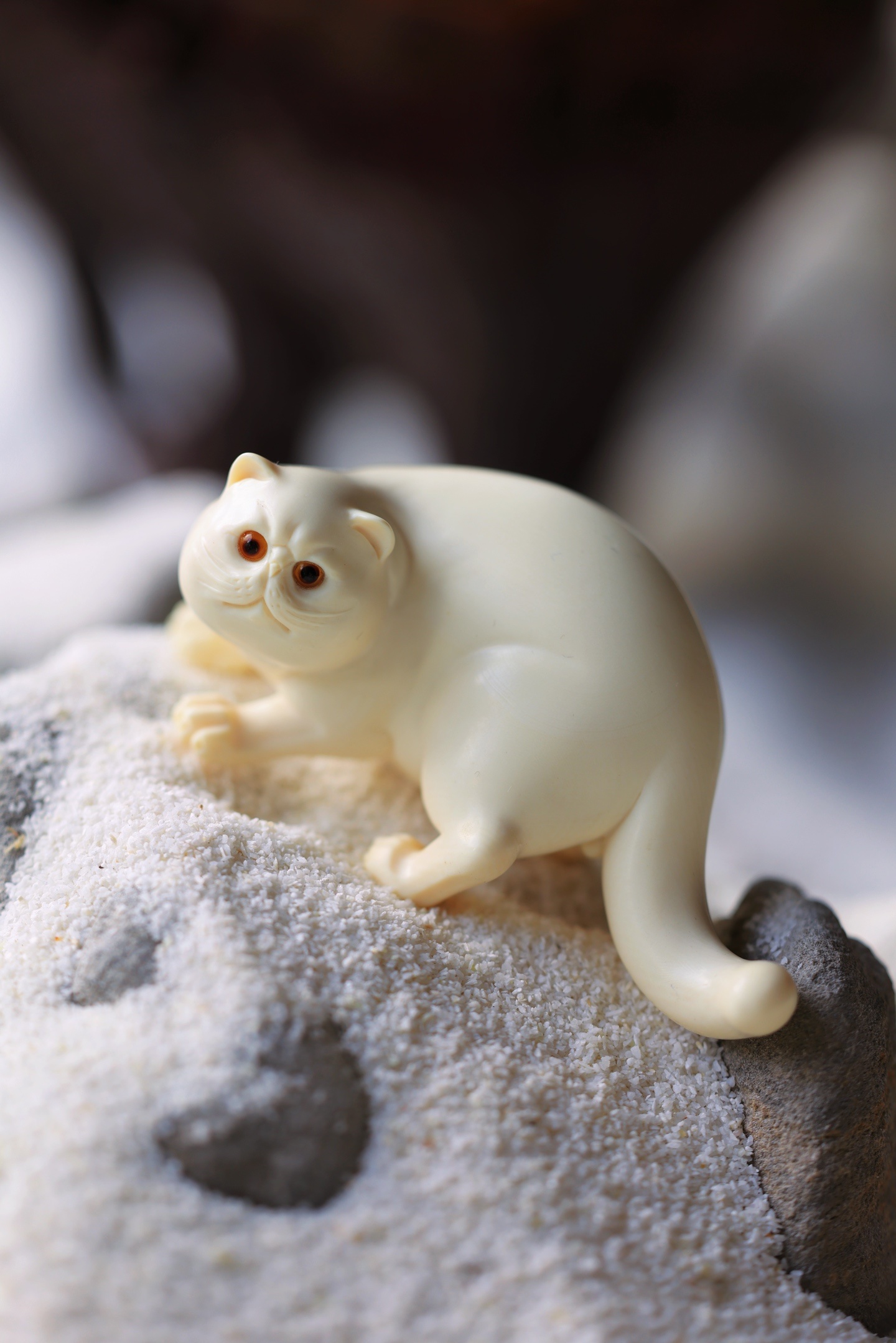 猛犸 | 招财猫雕工精细,材质润透满纹,镶嵌琥珀,祈愿生活平安祥宁,亦有招财,纳福的美好寓意。8cm*4cm*4cm