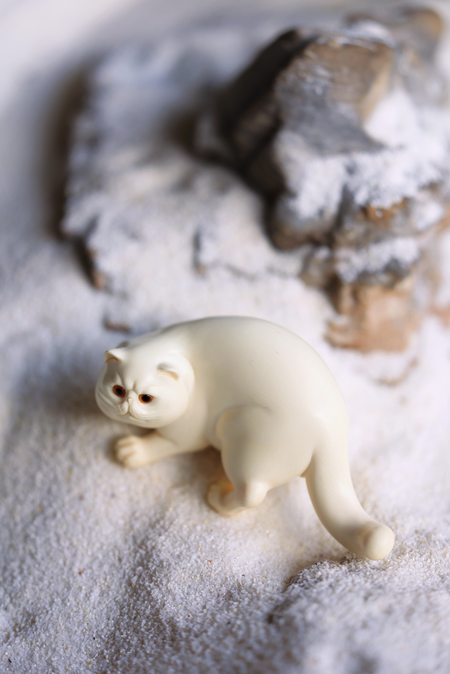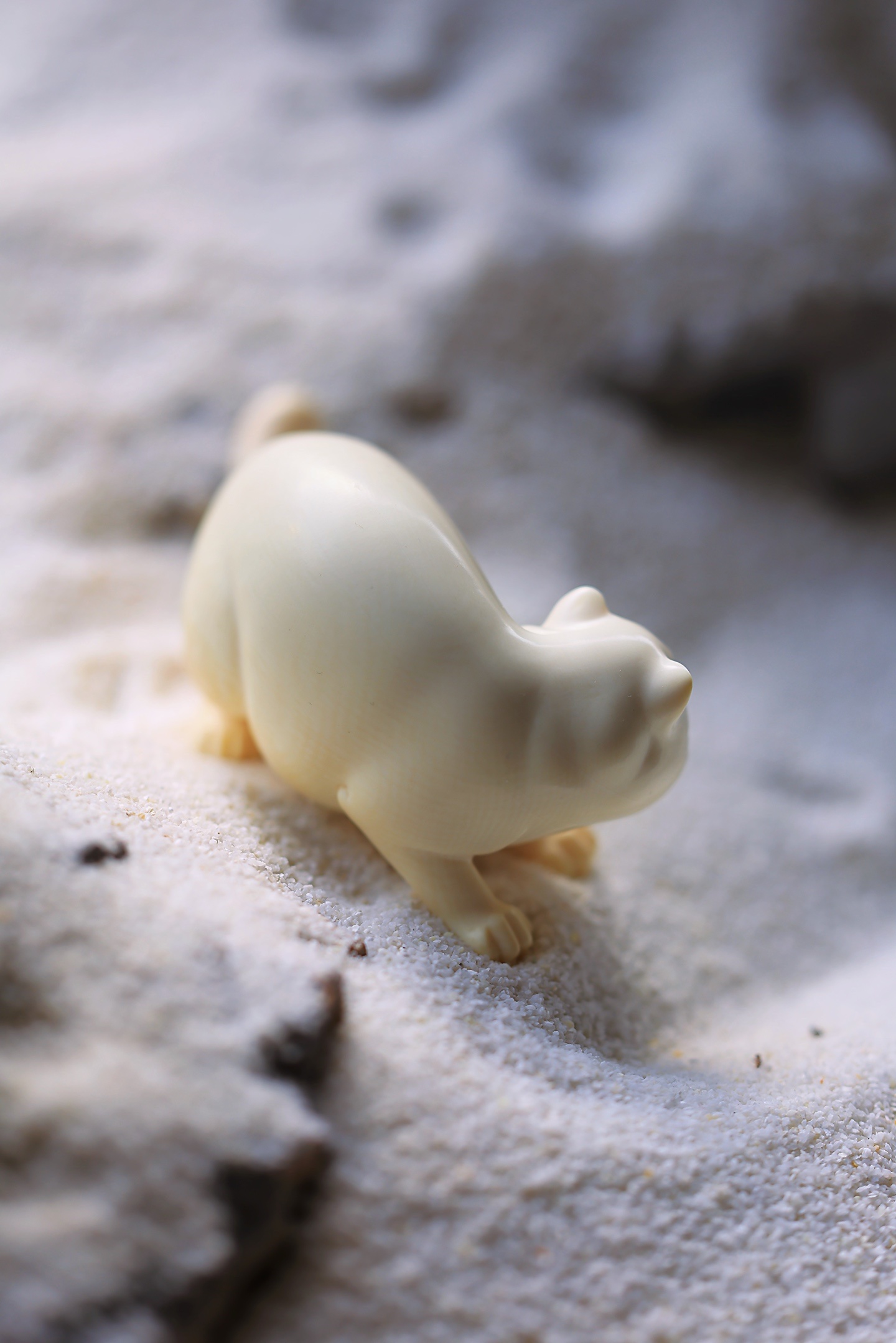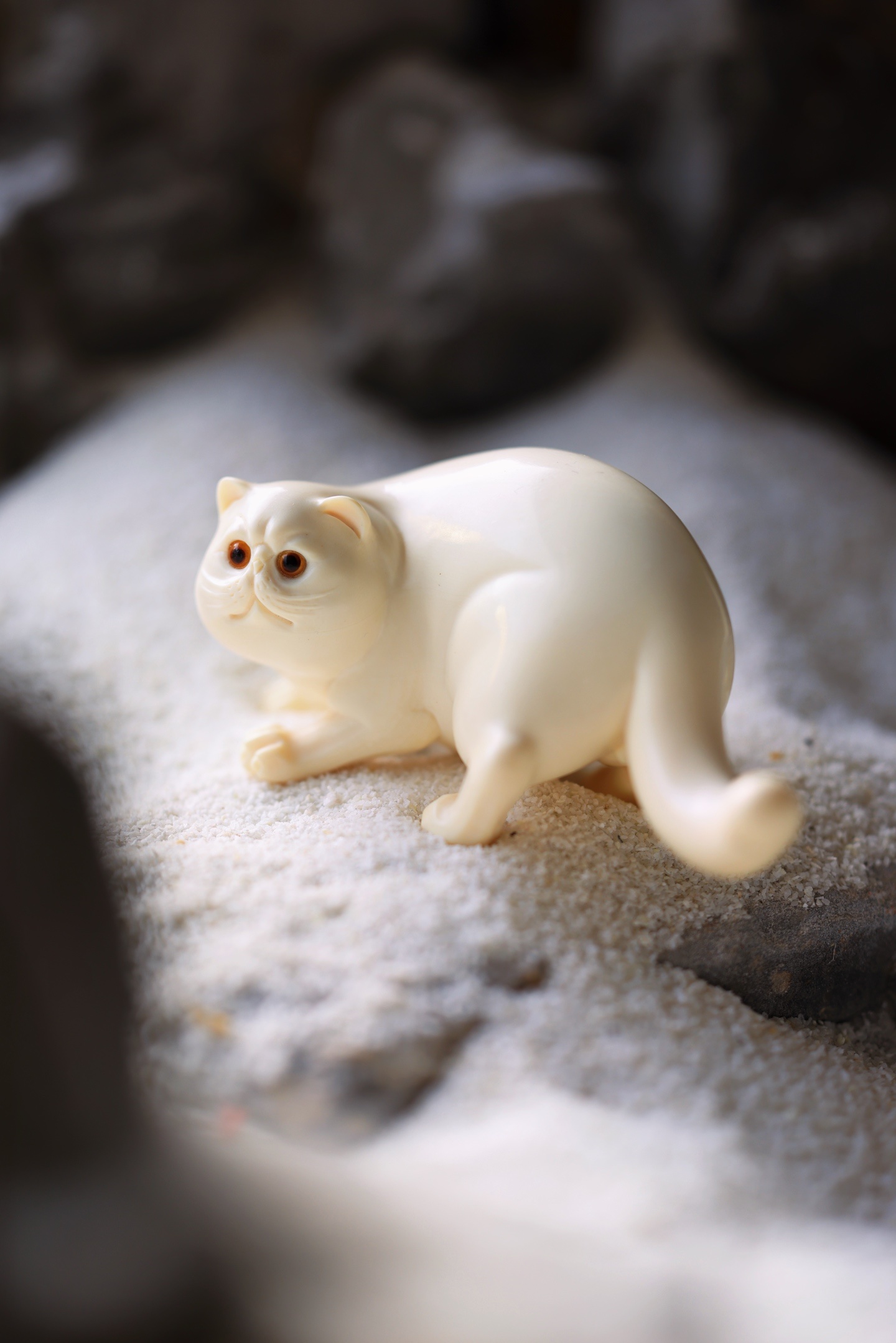 猛犸 | 招财猫雕工精细,材质润透满纹,镶嵌琥珀,祈愿生活平安祥宁,亦有招财,纳福的美好寓意。8cm*4cm*4cm