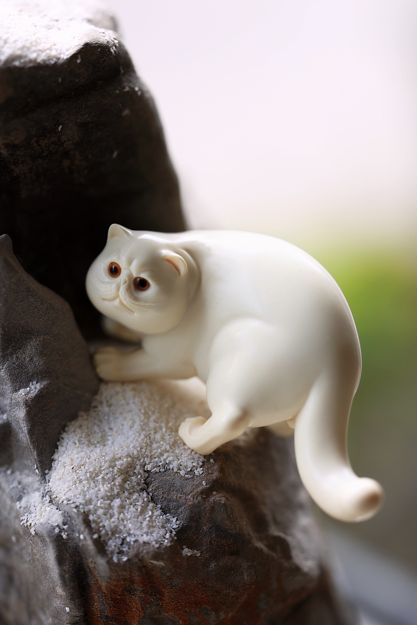 猛犸 | 招财猫雕工精细,材质润透满纹,镶嵌琥珀,祈愿生活平安祥宁,亦有招财,纳