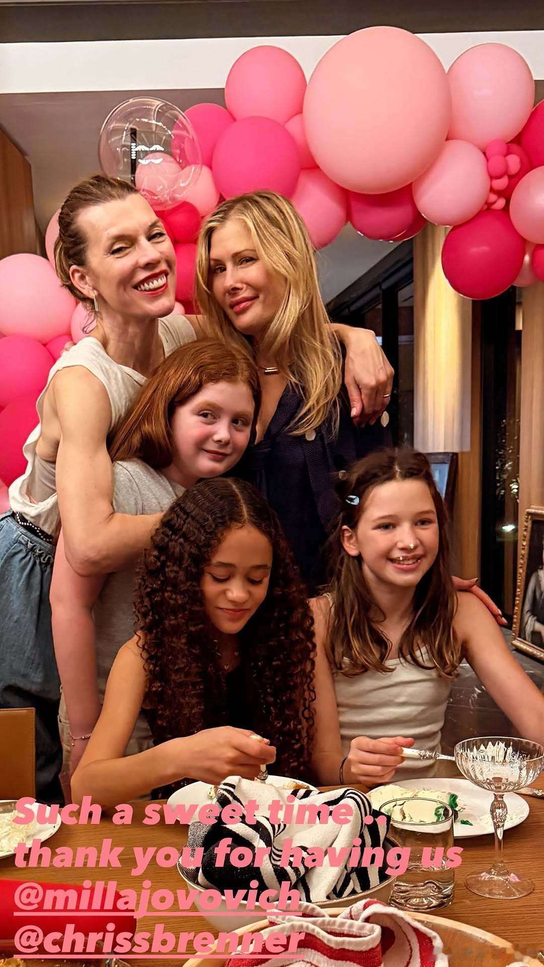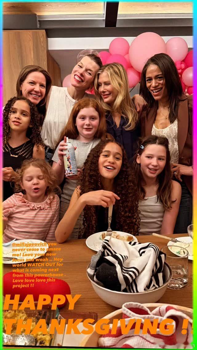 milla jovovich米拉乔沃维奇和两闺女还有朋友一起相聚过感恩节,随便摆pose也出片