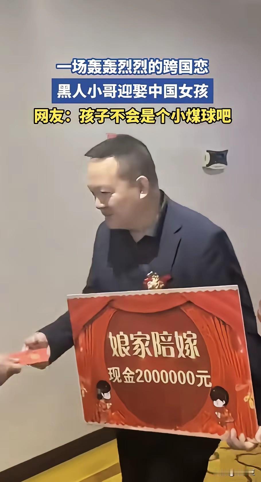 中国女孩嫁给黑人,家里陪嫁二百万现金和价值一百九十万的楼房一套! 我不谈彩礼或者倒贴的事,那太无聊了,毕竟人家自己愿意,跟我们何干? 我想咨询一下法律专业人士,这些陪嫁应该是算作对夫妻双方的赠与吧?如果算,那万一他们婚姻关系无法存续,应该按照共同财产分割吧?娶个媳妇,过或者过不了都是百万富翁了,人生啊,命运啊!